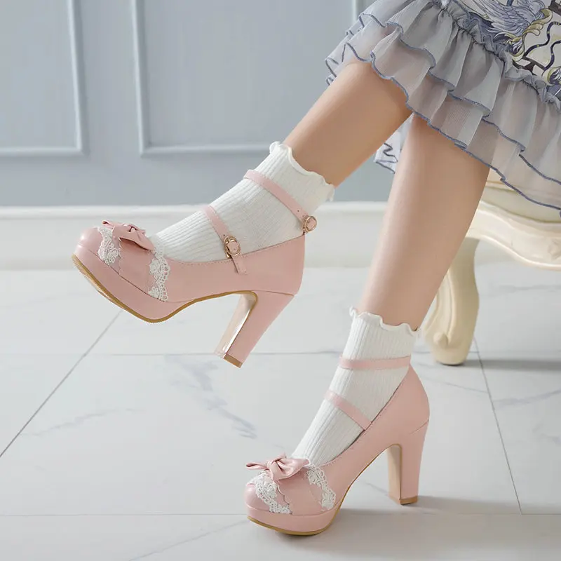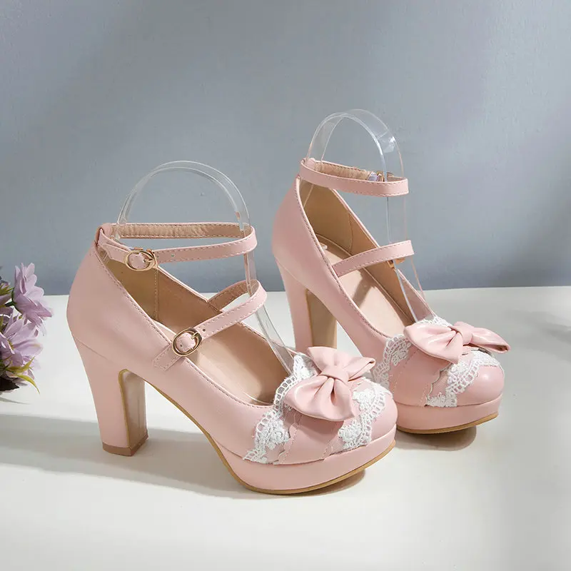 Пикантные женские туфли-лодочки на высоком каблуке, милые туфли мэри джейн с бантом, женские туфли с ремешком и пряжкой, женская обувь