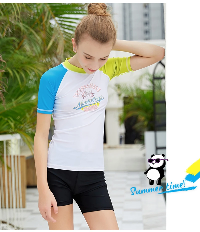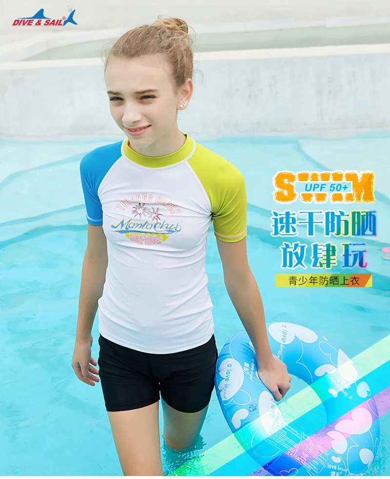 Подростковый эластичный Быстросохнущий купальник для серфинга Солнцезащитный УФ-защита подростковый Рашгард водолазный костюм облегающий пляжный подростковый короткий костюм футболка