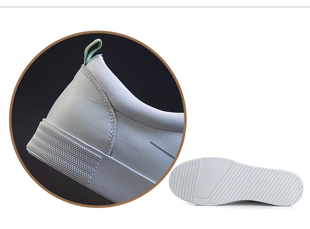 Каблук изготовлен из резины, которая не скользкая и износостойкая.