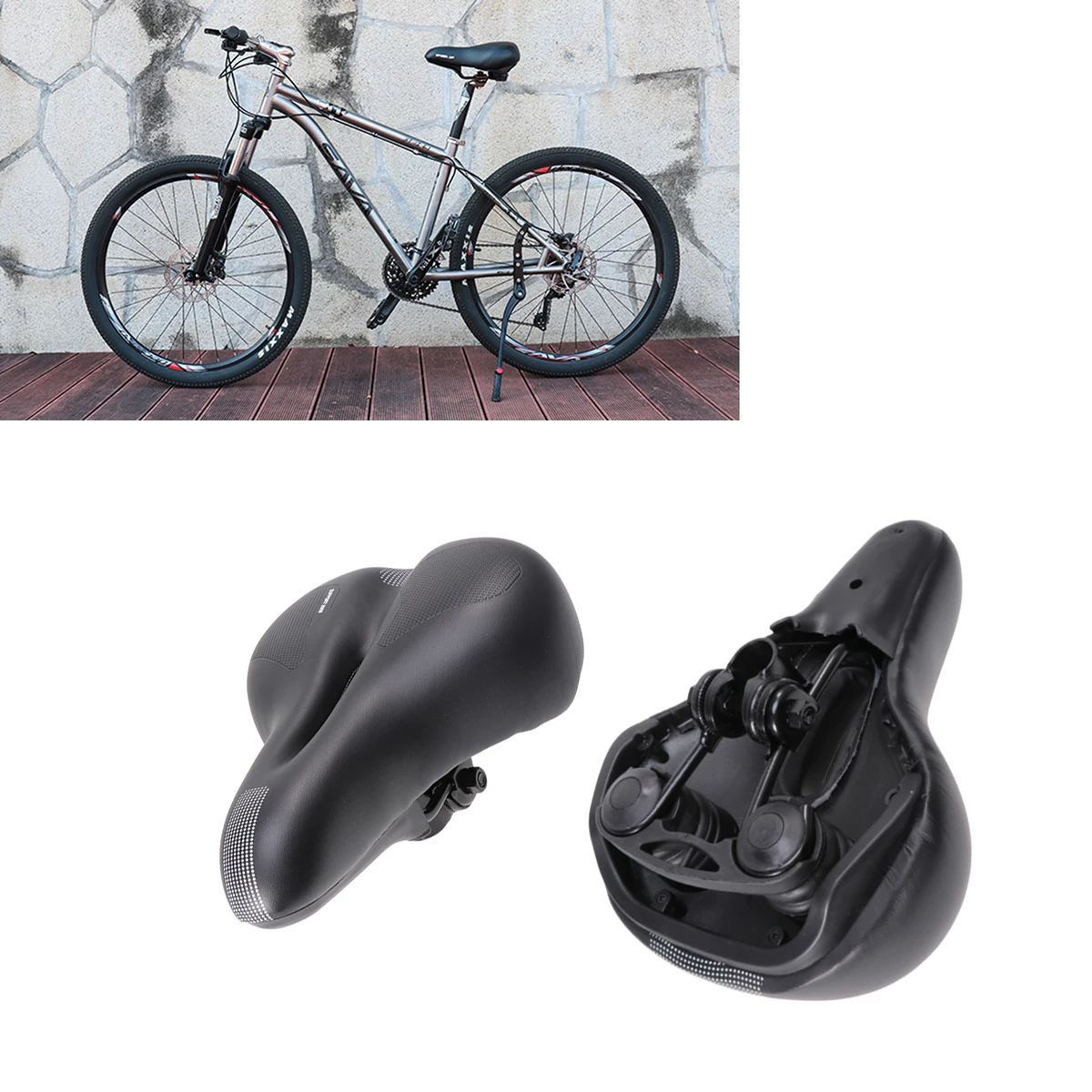 -Благодаря толстой обивке велосипедного сиденья и двойной пружинной подвеске, это действительно удобное Велосипедное Сиденье, которое помогает вам держаться подальше от боли и болезненности.