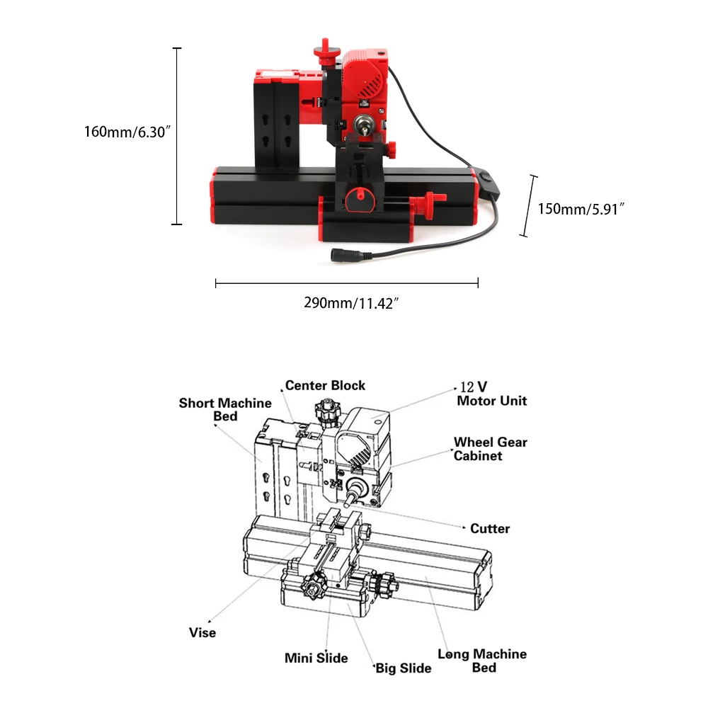 Metal Lathe Size: 29 * 15 * 16cm / 11.42 * 5.91 * 6.30in