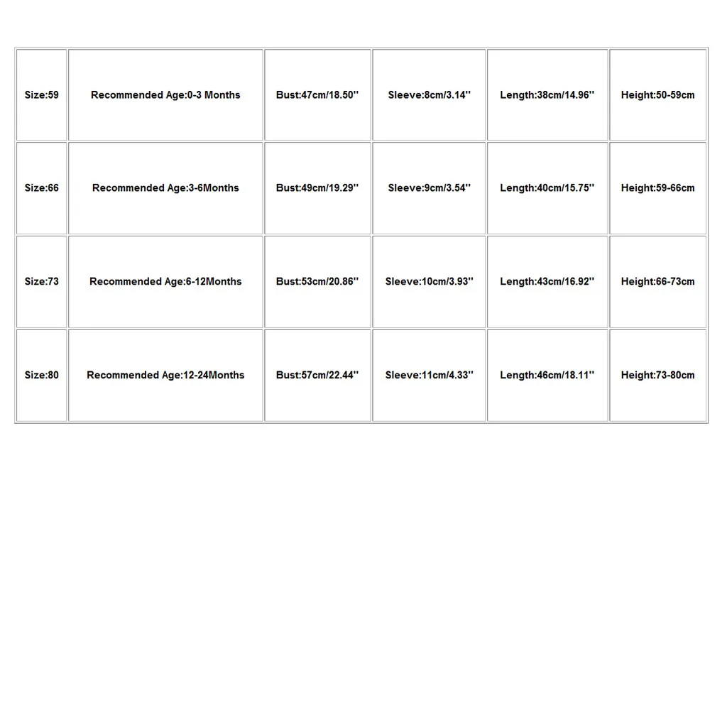 Посылка включает в себя: 1 Топ, 1 юбка, 1 головной уборРазмер Рекомендуемый возраст Бюст Рукав Длина Высота 59 0-3 месяца 47 см/18,50'' 8 см/3,14'' 38 см/14,96'' 50-59 см 66 От 3 до 6 месяцев 49 см/19,29'' 9 см/3,54 дюйма 40 см/15,75'' 59-66 см 73 От 6 до 12 месяцев 53 см/20,86'' 10 см/3,93'' 43 см/16,92'' 66-73 см 80 12-24 месяца 57 см/22,44'' 11 см/4,33 дюйма 46 см/18,11'' 73-80 см Размер: 59 Рекомендуемый Возраст: 0-3 месяца Бюст: 47 см/18,50'' Рукав: 8 см/3,14'' Длина: 38 см/14,96 дюйма Высота: 50-59 см Размер: 66 Рекомендуемый возраст: От 3 до 6 месяцев Бюст: 49 см/19,29'' Рукав: 9 см/3,54 дюйма Длина: 40 см/15,75'' Высота: 59-66 см Размер: 73 Рекомендуемый возраст: От 6 до 12 месяцев Обхват груди: 53 см/20,86 дюйма Рукав: 10 см/3,93 дюйма Длина: 43 см/16,92'' Высота: 66-73 см Размер: 80 Рекомендуемый возраст: 12-24 месяца Обхват груди: 57 см/22,44 дюйма Рукав: 11 см/4,33 дюйма Длина: 46 см/18,11'' Высота: 73-80 см