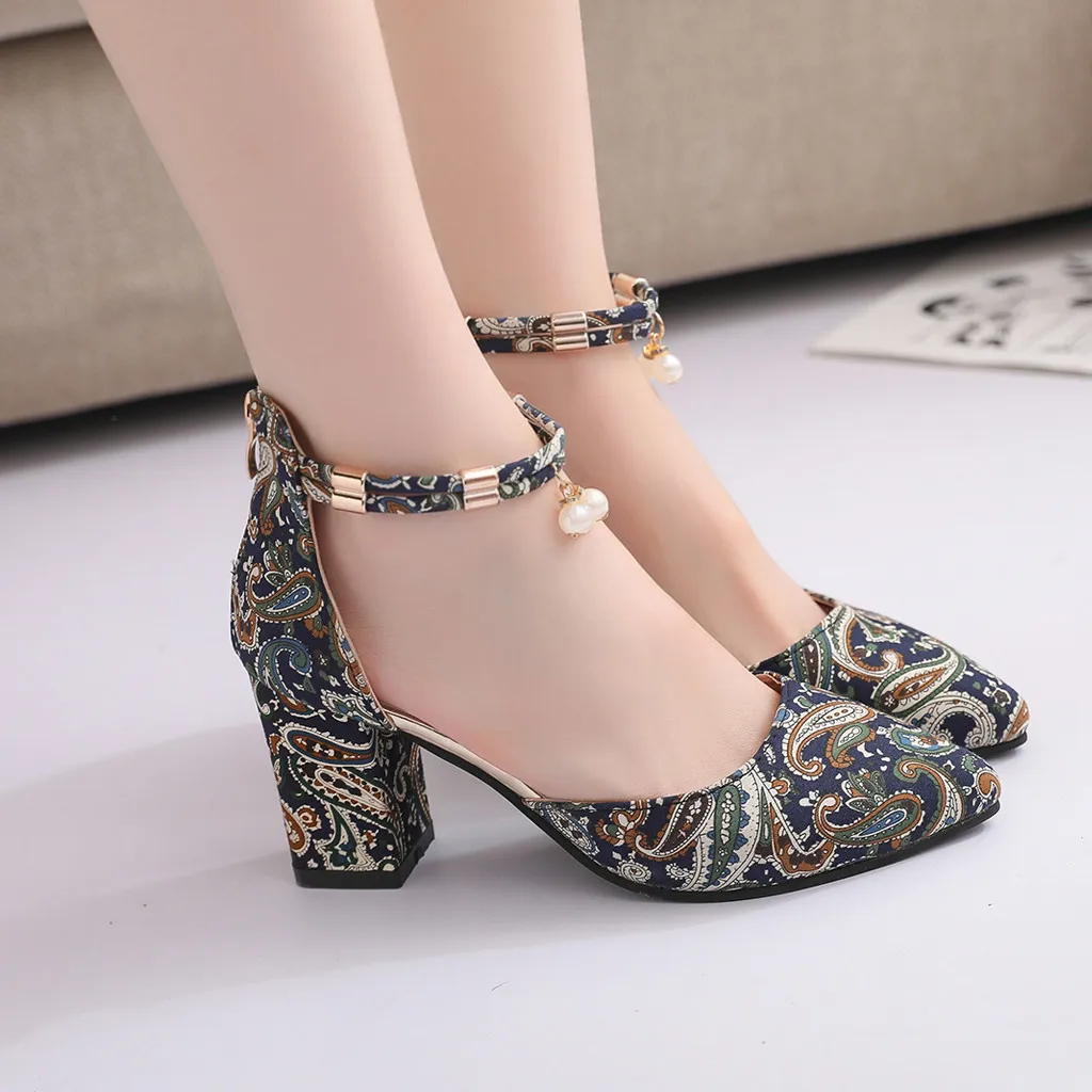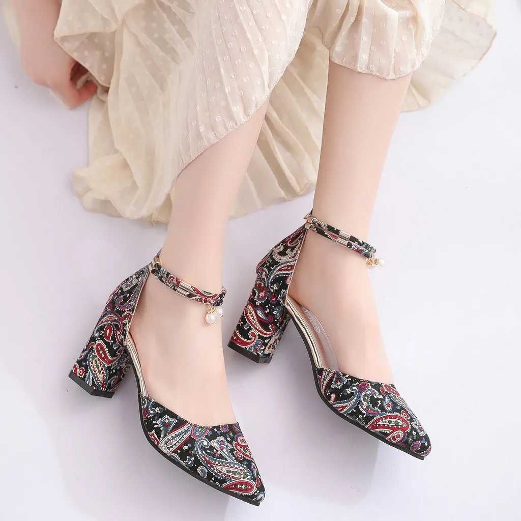 Женская обувь на высоком квадратном каблуке; Летние повседневные сандалии; сандалии с ремешком на щиколотке и пряжкой