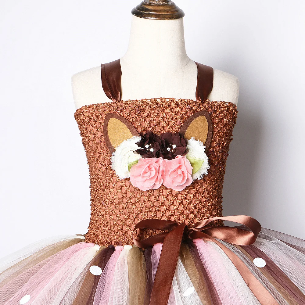 Тема: милые коричневые Платья с цветочным принтом и оленем для девочек Материал: Высококачественная нейлоновая юбка + эластичное вязаное крючком верх + лента + цветы. Цвет: коричневый, розовый, бежевый Повод: косплей, Хэллоуин, карнавал, день рождения, вечерние, Рождество, фотография, танец, представление, праздник, новый год, выпускной, карнавал, Рождество, фестиваль, Пасха, карнавал, свадьба, день Святого Валентина, И т. д. Советы: 1. Индивидуальный заказ и Прямая поставка приветствуются, возможен индивидуальный дизайн/цвет/размер/идея. 2. Платье с подкладкой внутри, а также добавить больше тюля, так что платье гораздо более пушистое. Ниже фотографии платьев для девочек являются реальными.