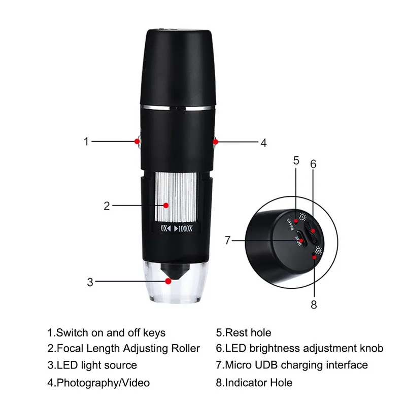-- Простота в эксплуатации -- изделие включает в себя бесплатную загрузку мобильного приложения и usb-кабель для зарядки. Загрузите бесплатное приложение и просмотрите микроскопический мир на вашем смартфоне или планшете.