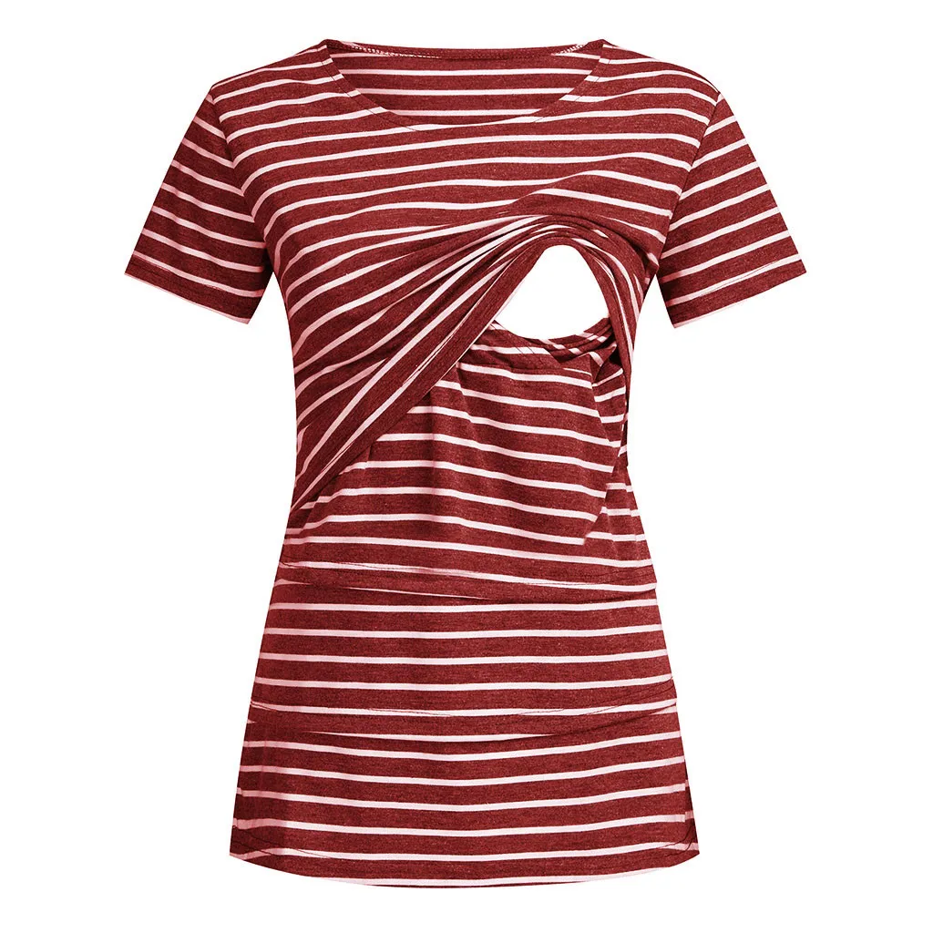 WТопы в полоску с круглым вырезом и короткими рукавами для беременных