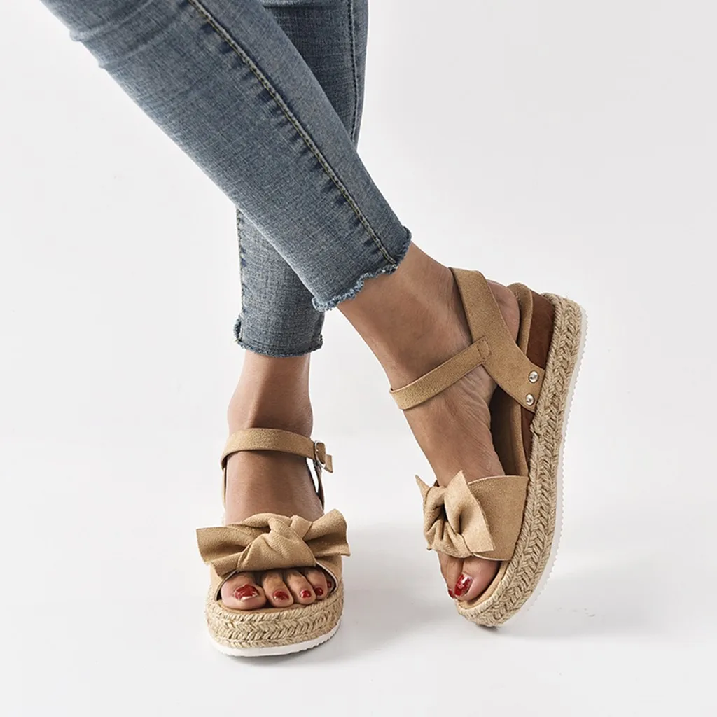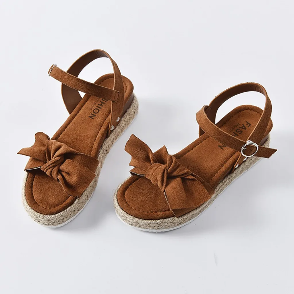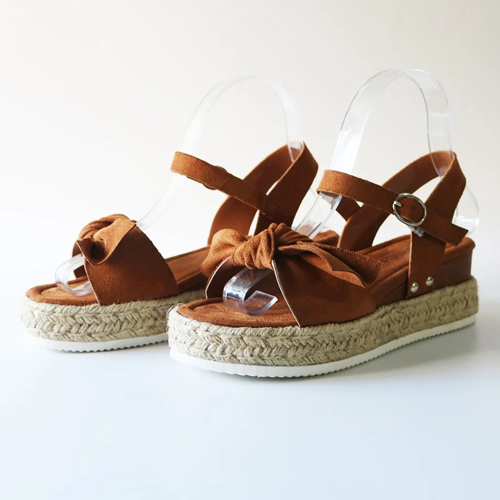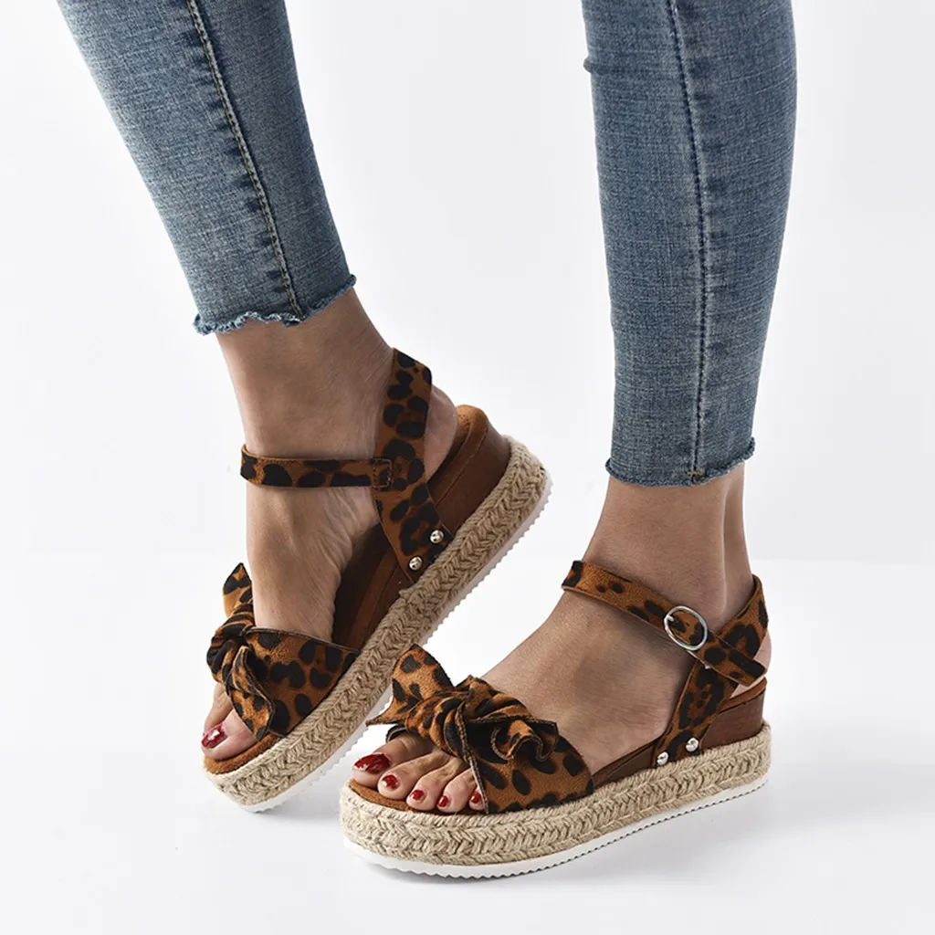 Однотонные леопардовые сандалии на танкетке с бантом; повседневная обувь