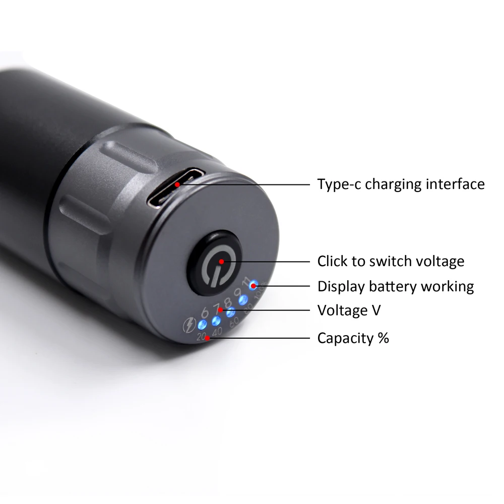 2 .. Нажмите и удерживайте кнопку питания 0,8 секунд, чтобы начать, если вы хотите использовать, эта татуировка мощность supplu может работать на Ротари Машина татуировки без зажима шнуров.