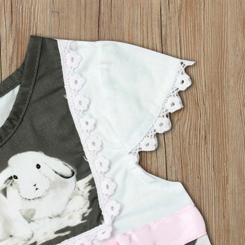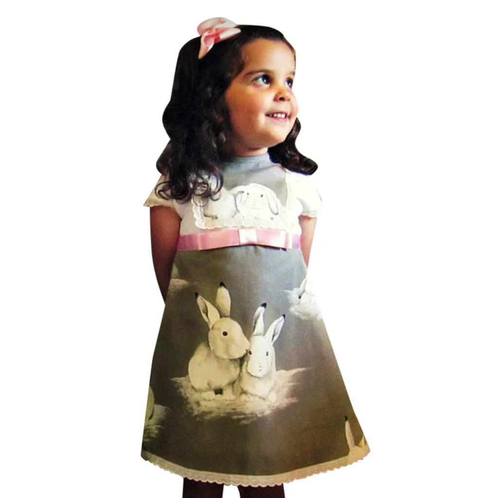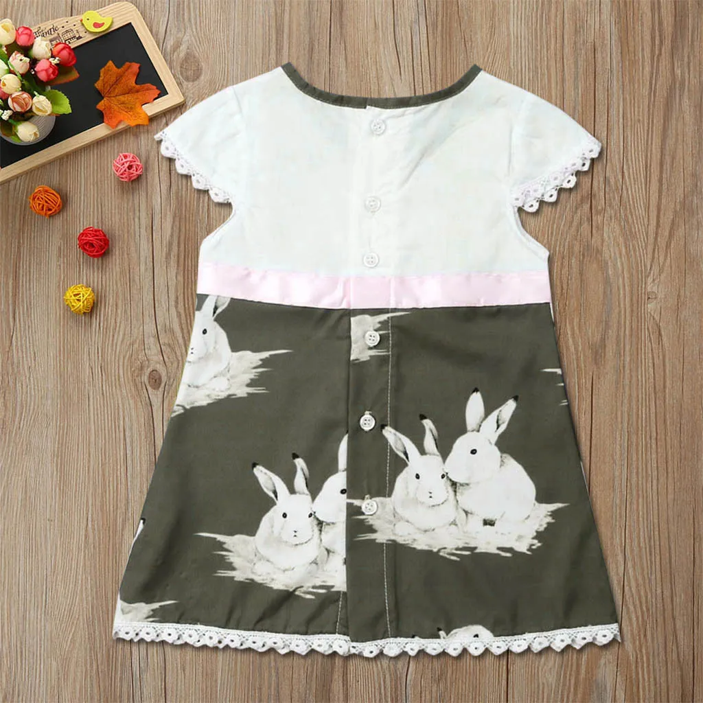 Toddler Baby Girls Short Sleeve Lace Easter Day Rabbit Print Dress Clothes
