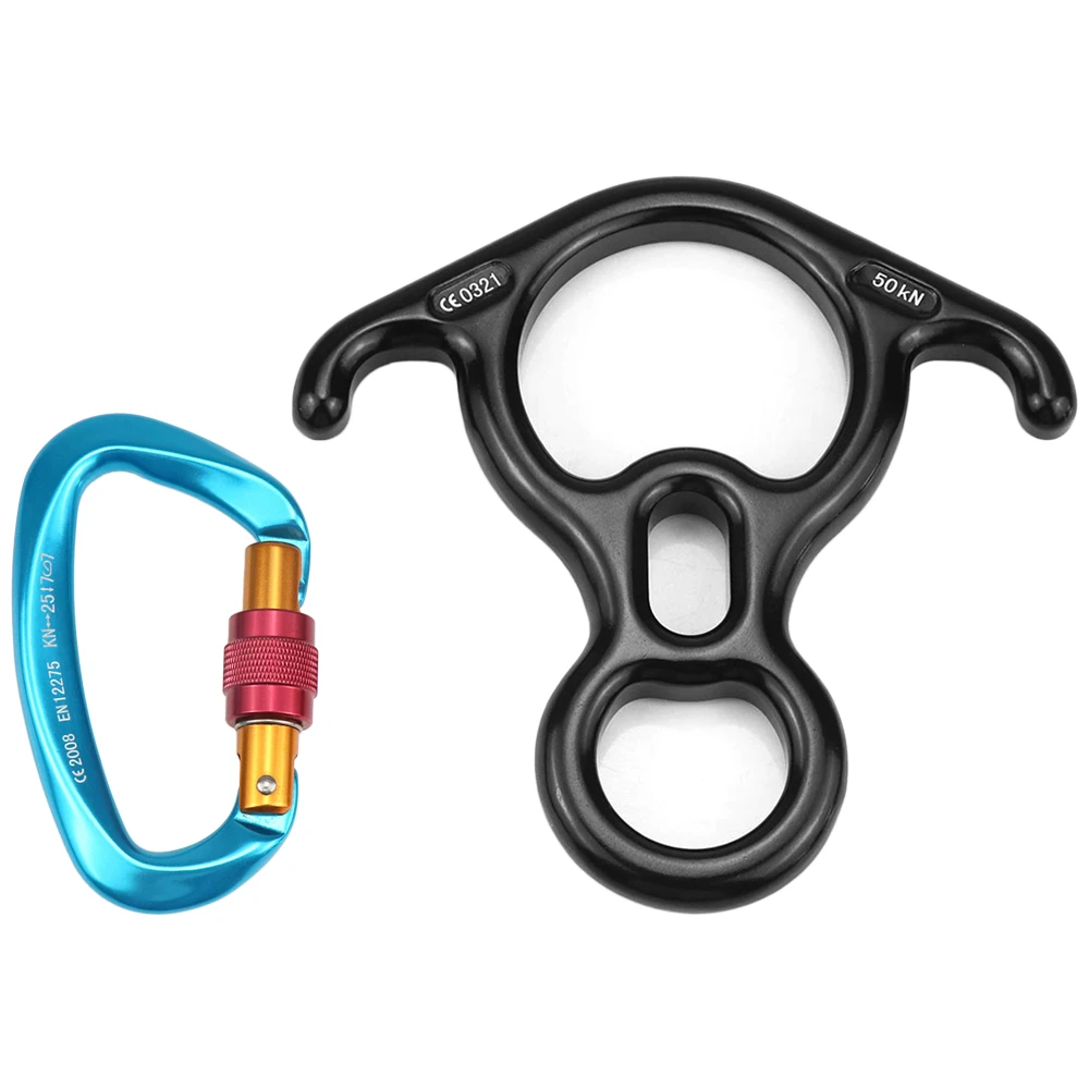 Открытый 25KN карабин 50KN Climb 8 Descender набор с винтовыми запорными воротами для гамаков Походное снаряжение для альпинизма