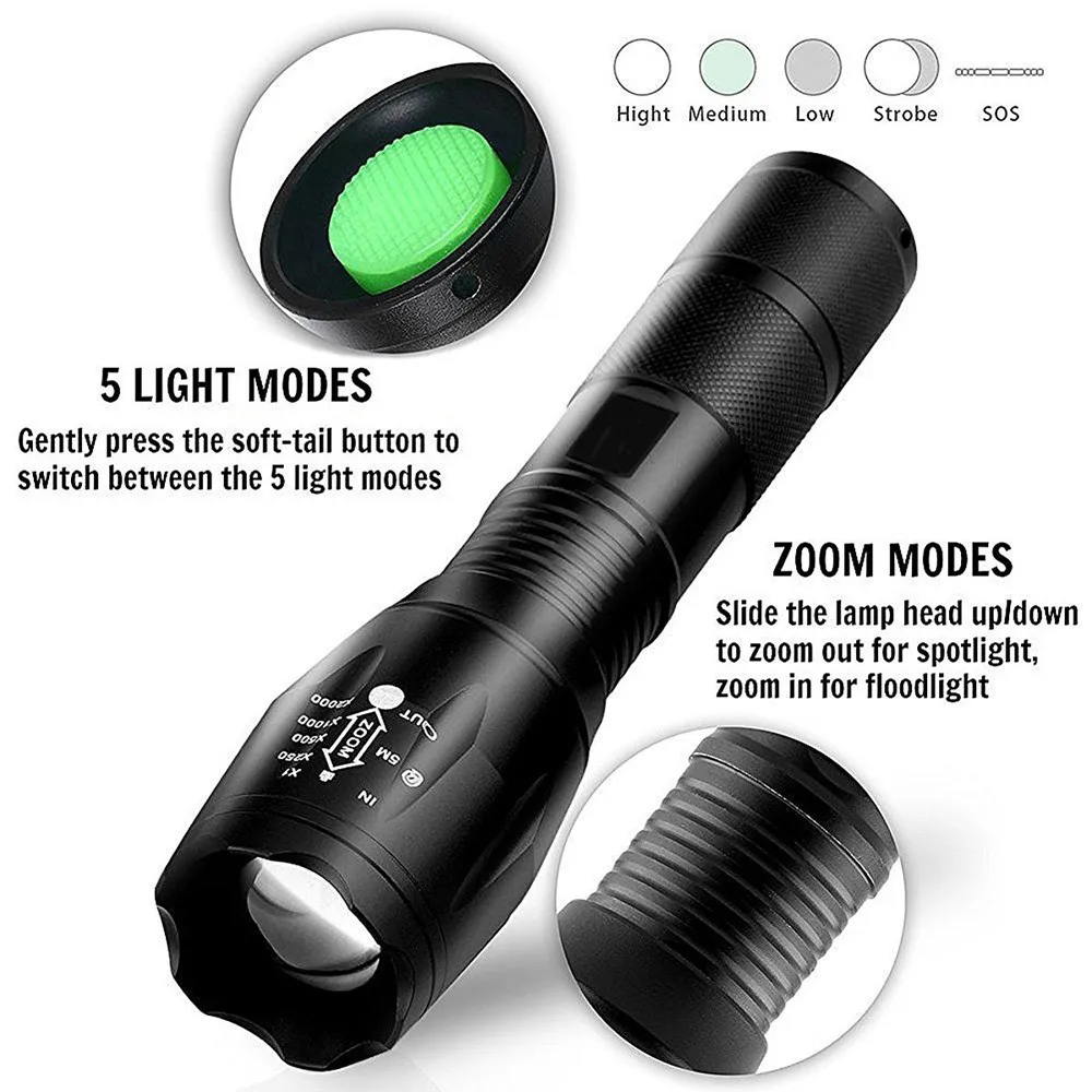 Масштабируемый XML L2 светодиодный тактический фонарик + аккумулятор 18650 + держатель + зарядное устройство + чехол
