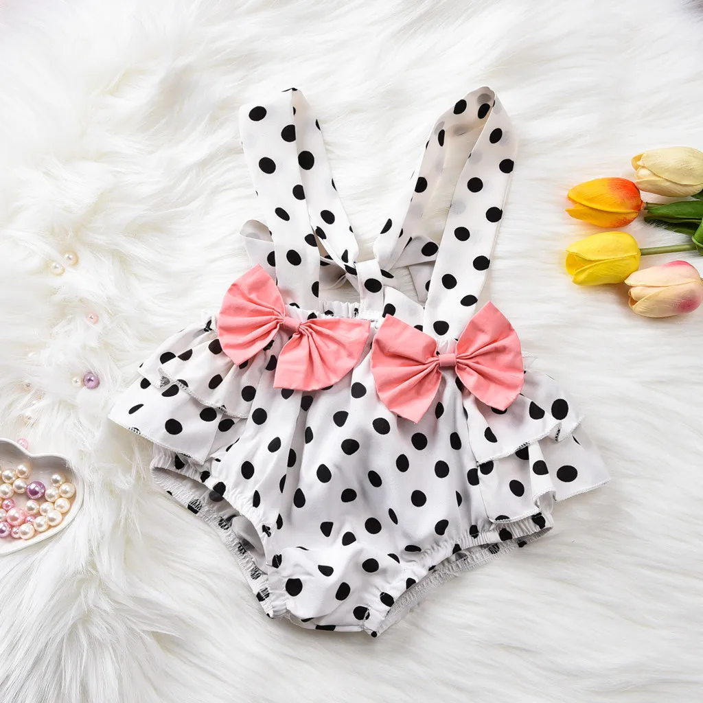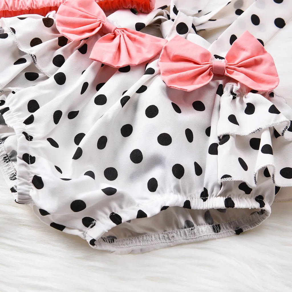 Рубашка для новорожденных девочек; Топы с бантом в горошек; Комплект с шортами на подтяжках
