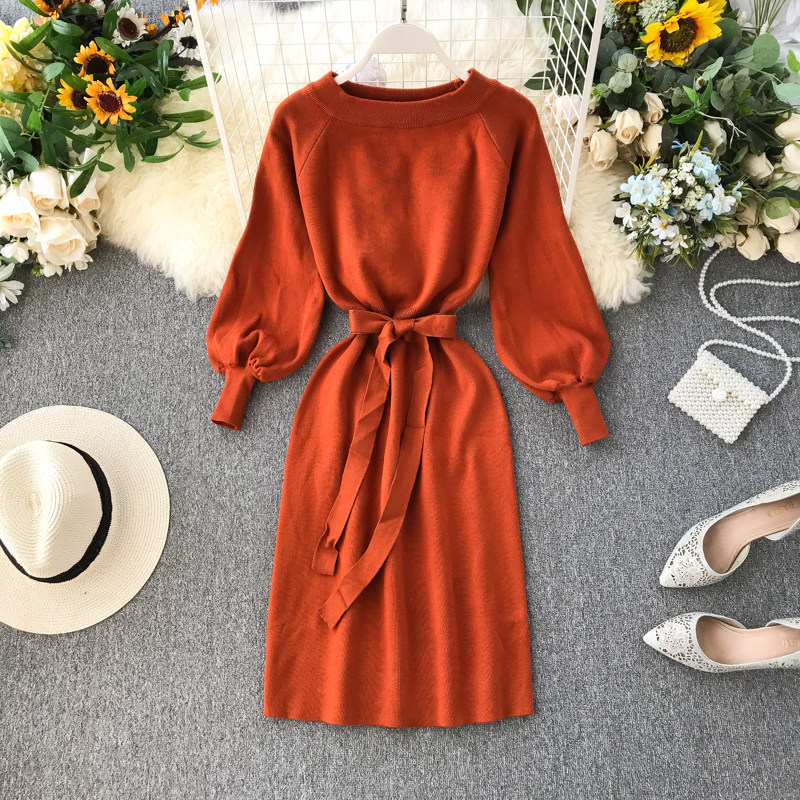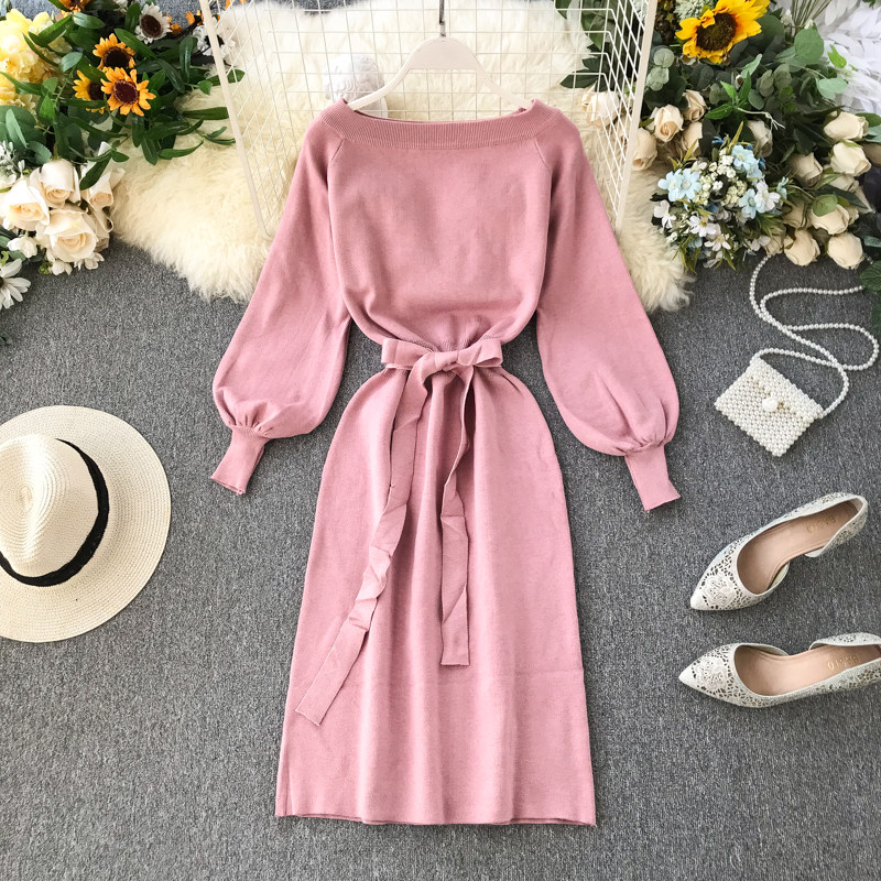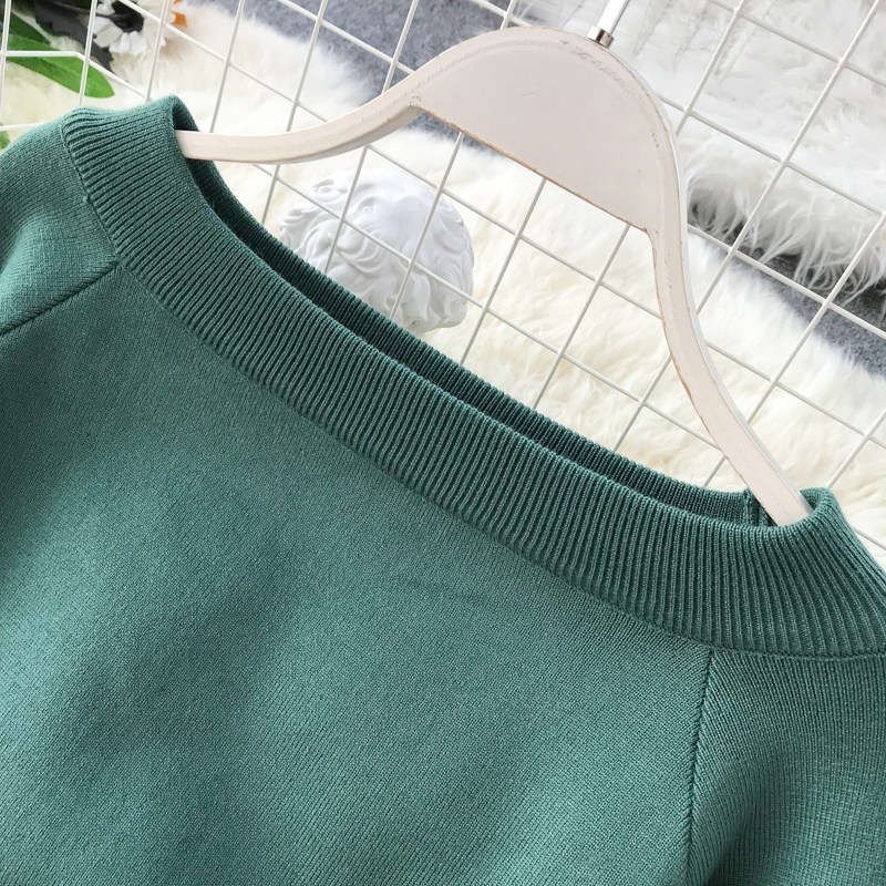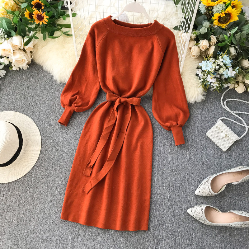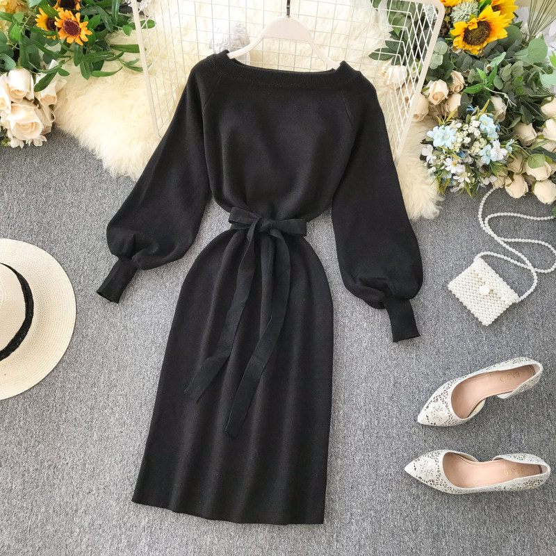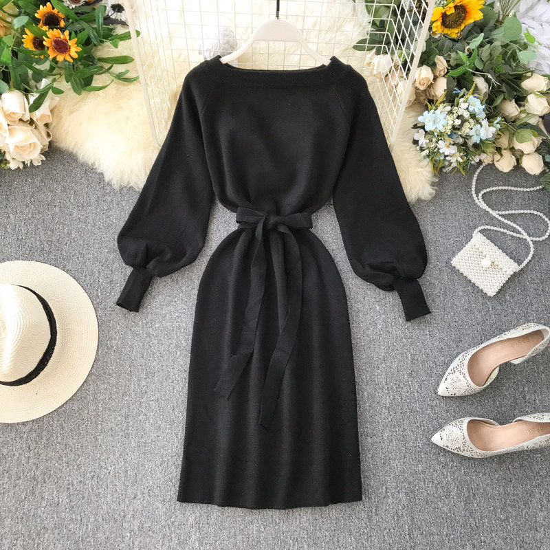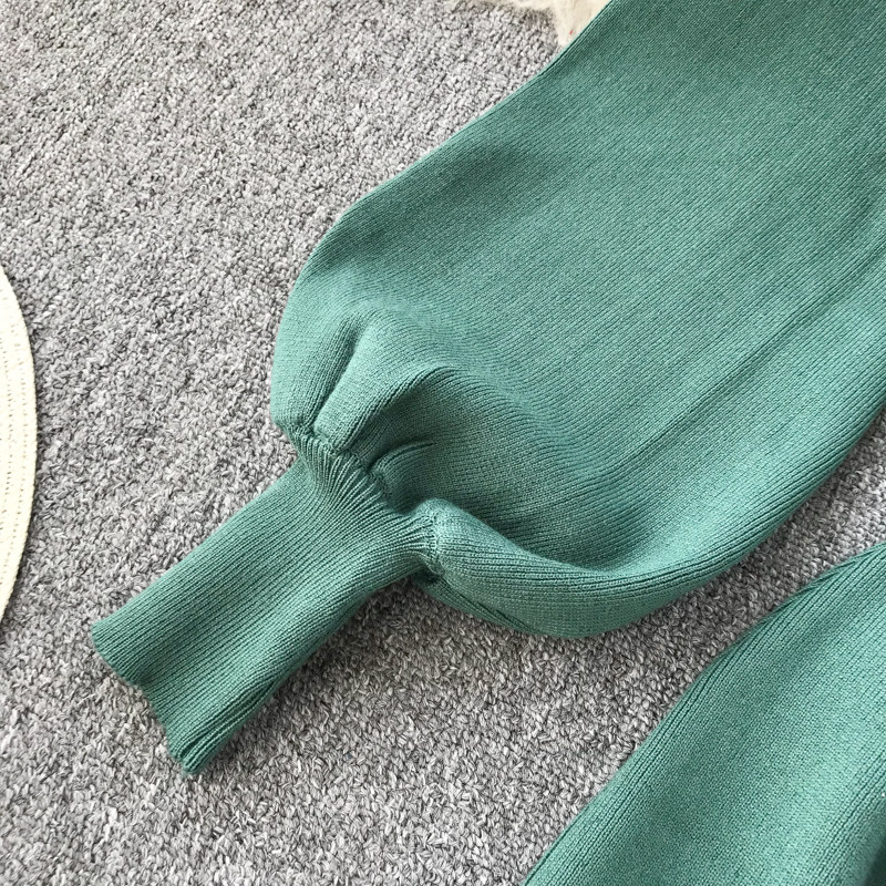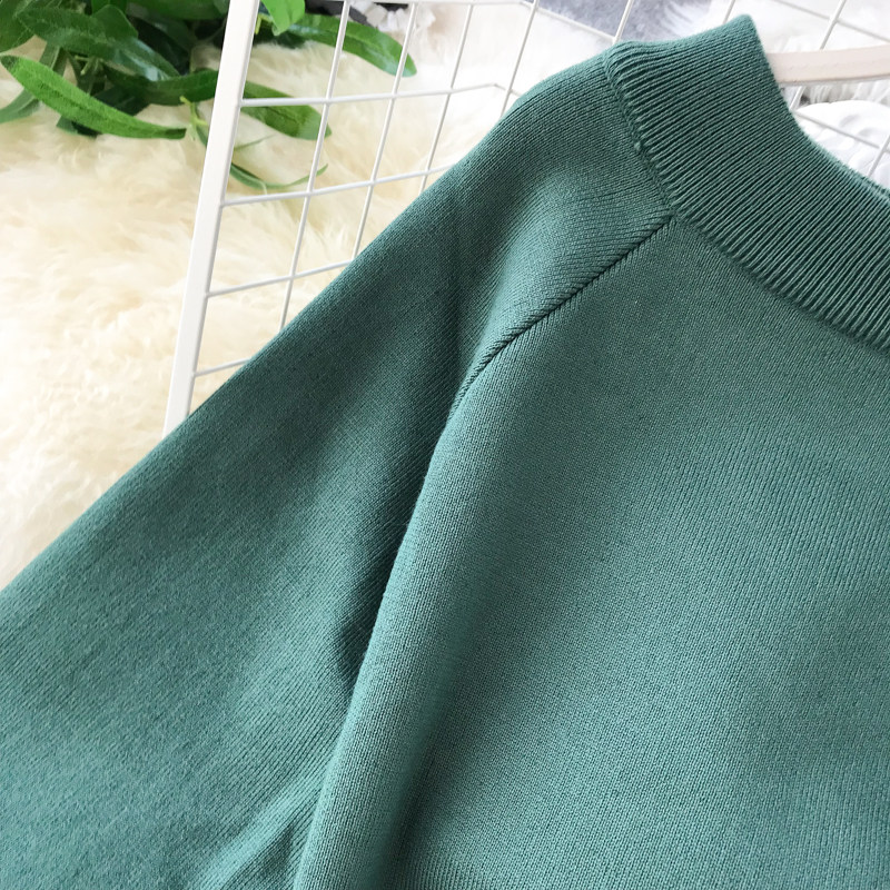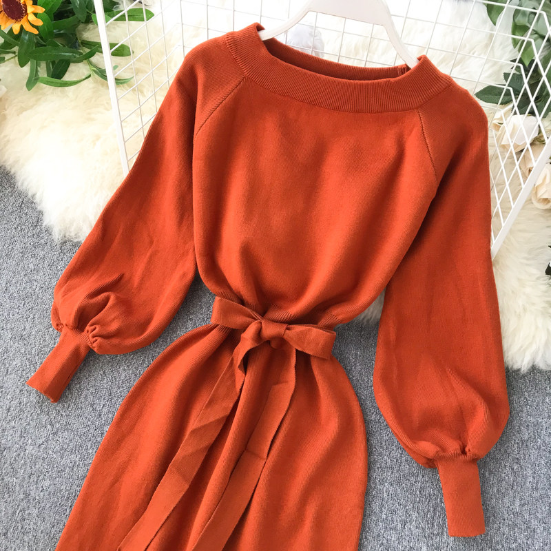 Длинный свитер с рукавами-фонариками и низом большого размера; трикотажное платье с одним воротником для полных сестер; DB259