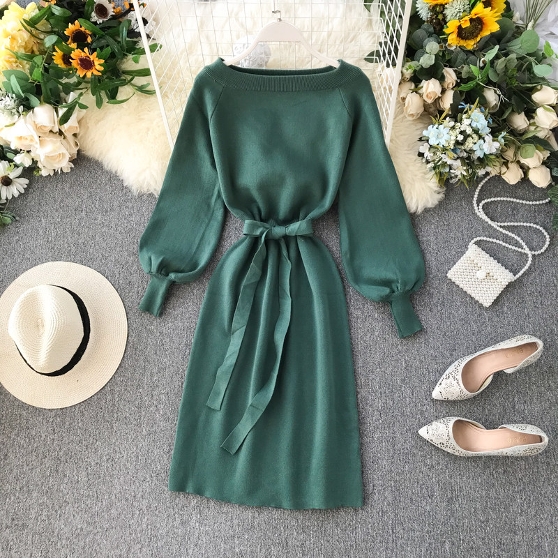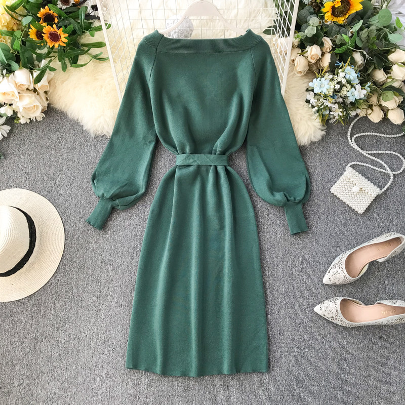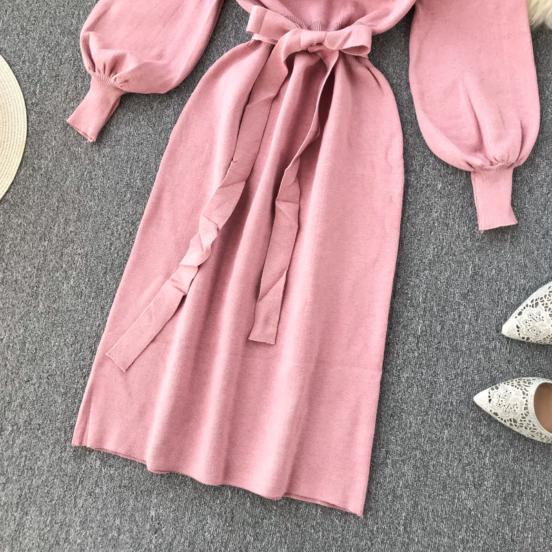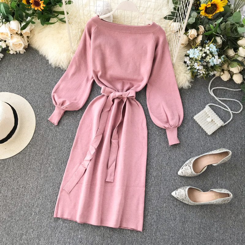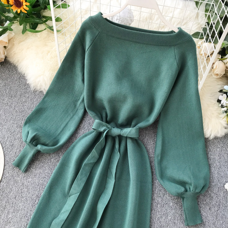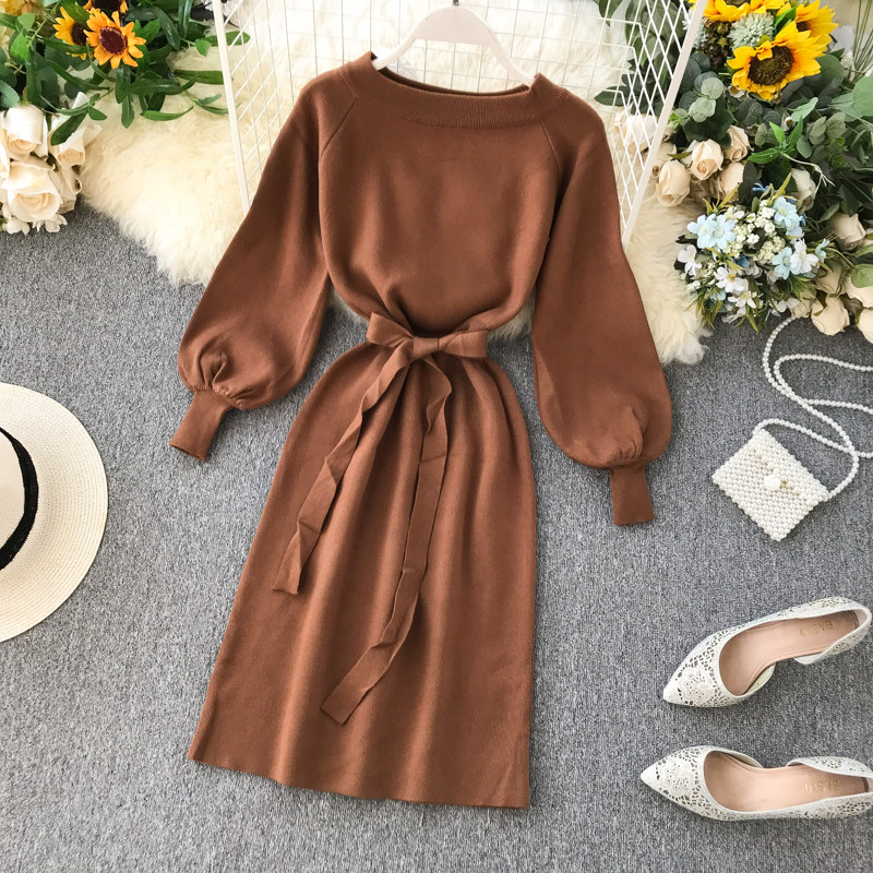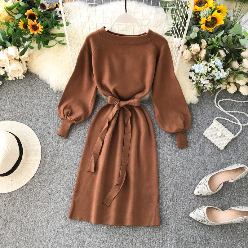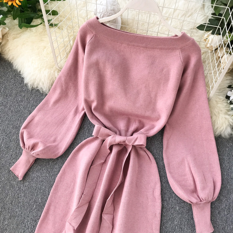 Длинный свитер с рукавами-фонариками и низом большого размера; трикотажное платье с одним воротником для полных сестер; DB259