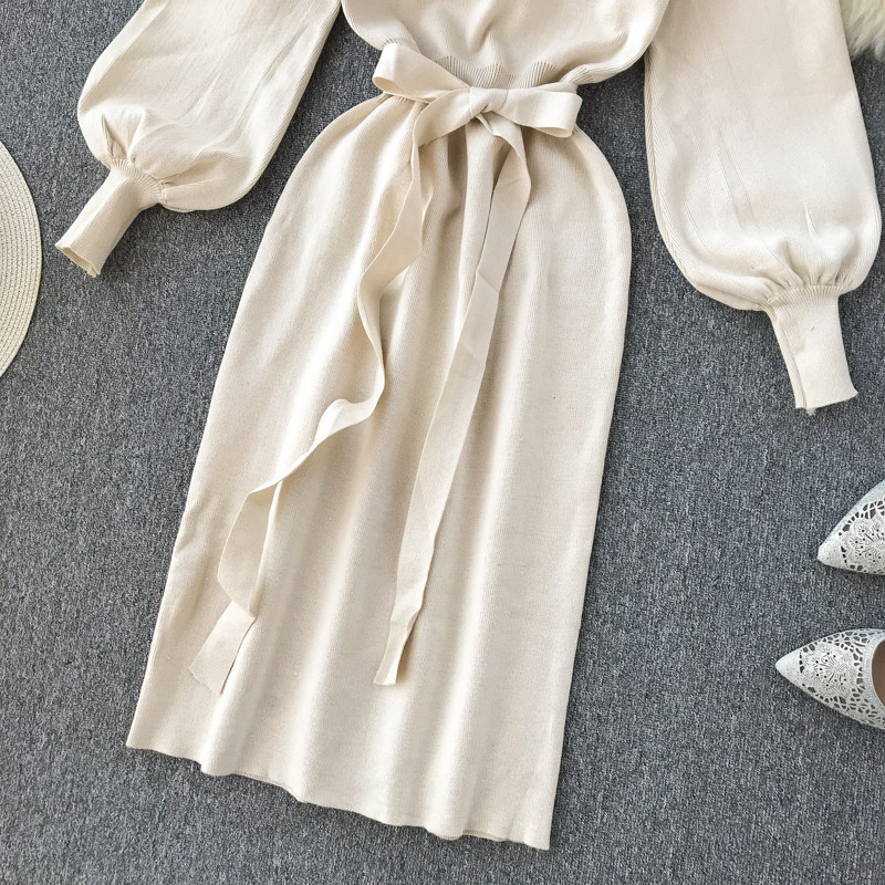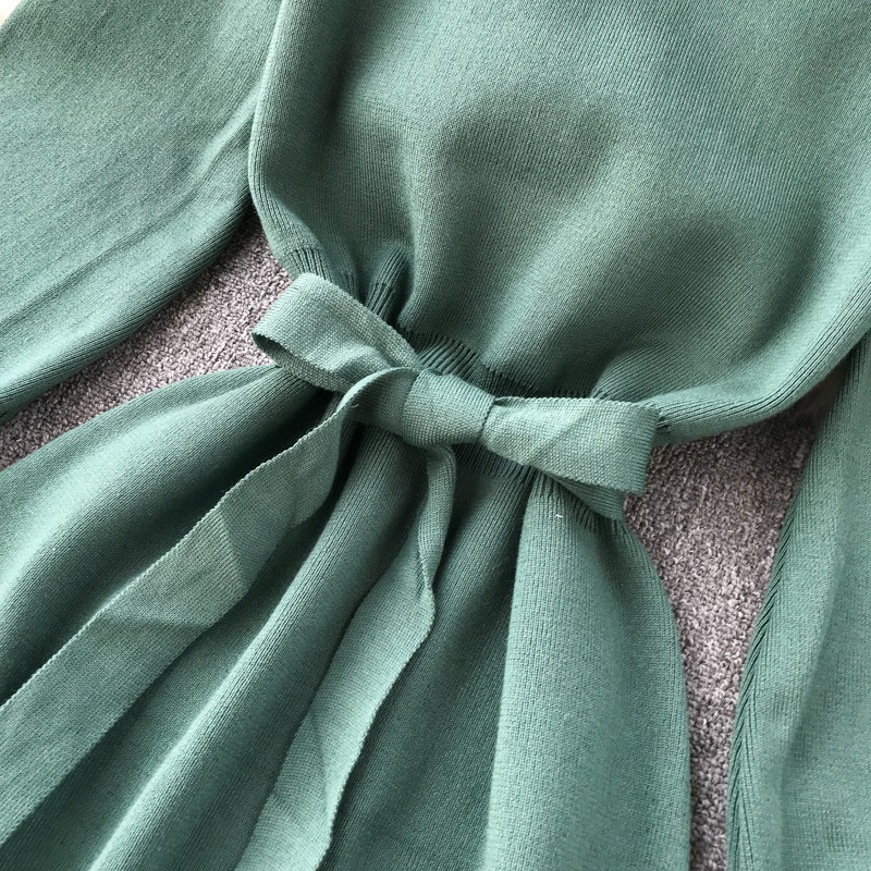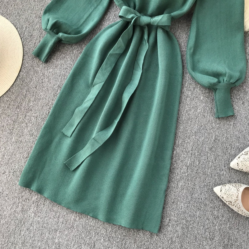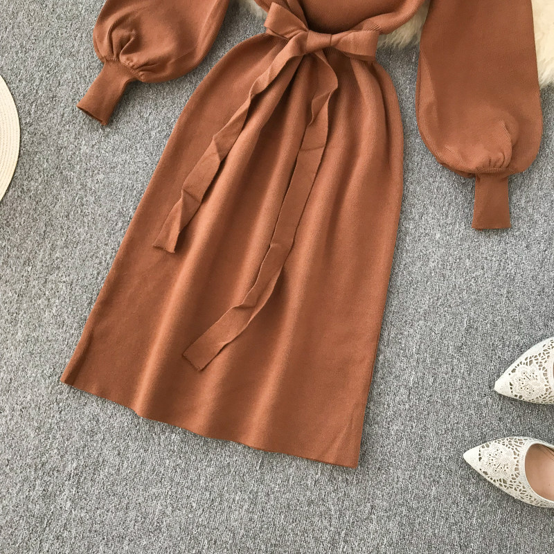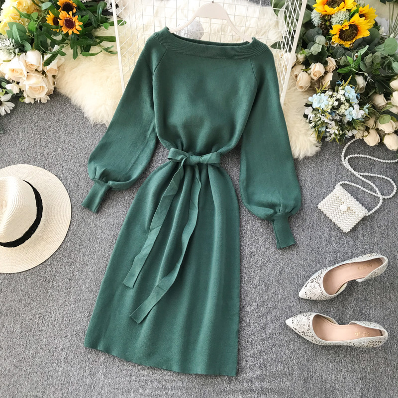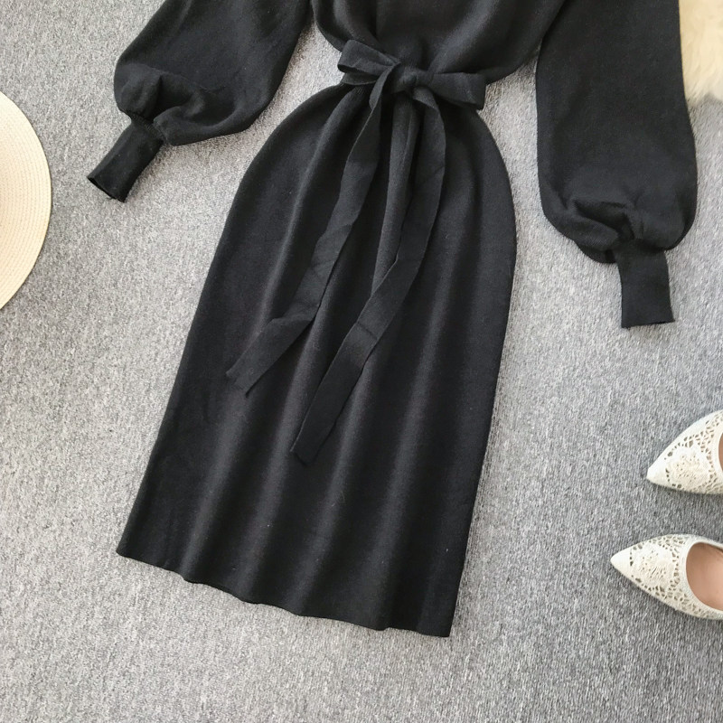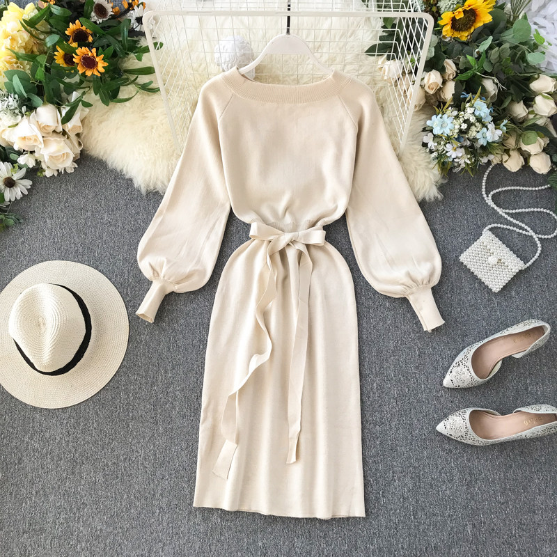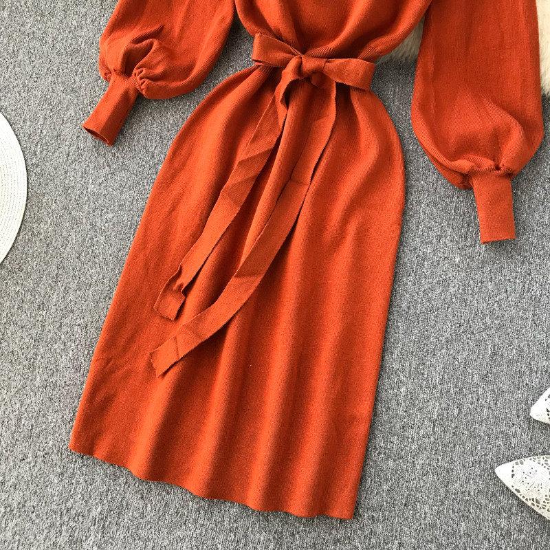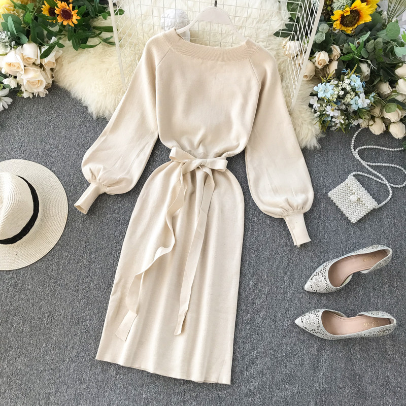 Длинный свитер с рукавами-фонариками и низом большого размера; трикотажное платье с одним воротником для полных сестер; DB259