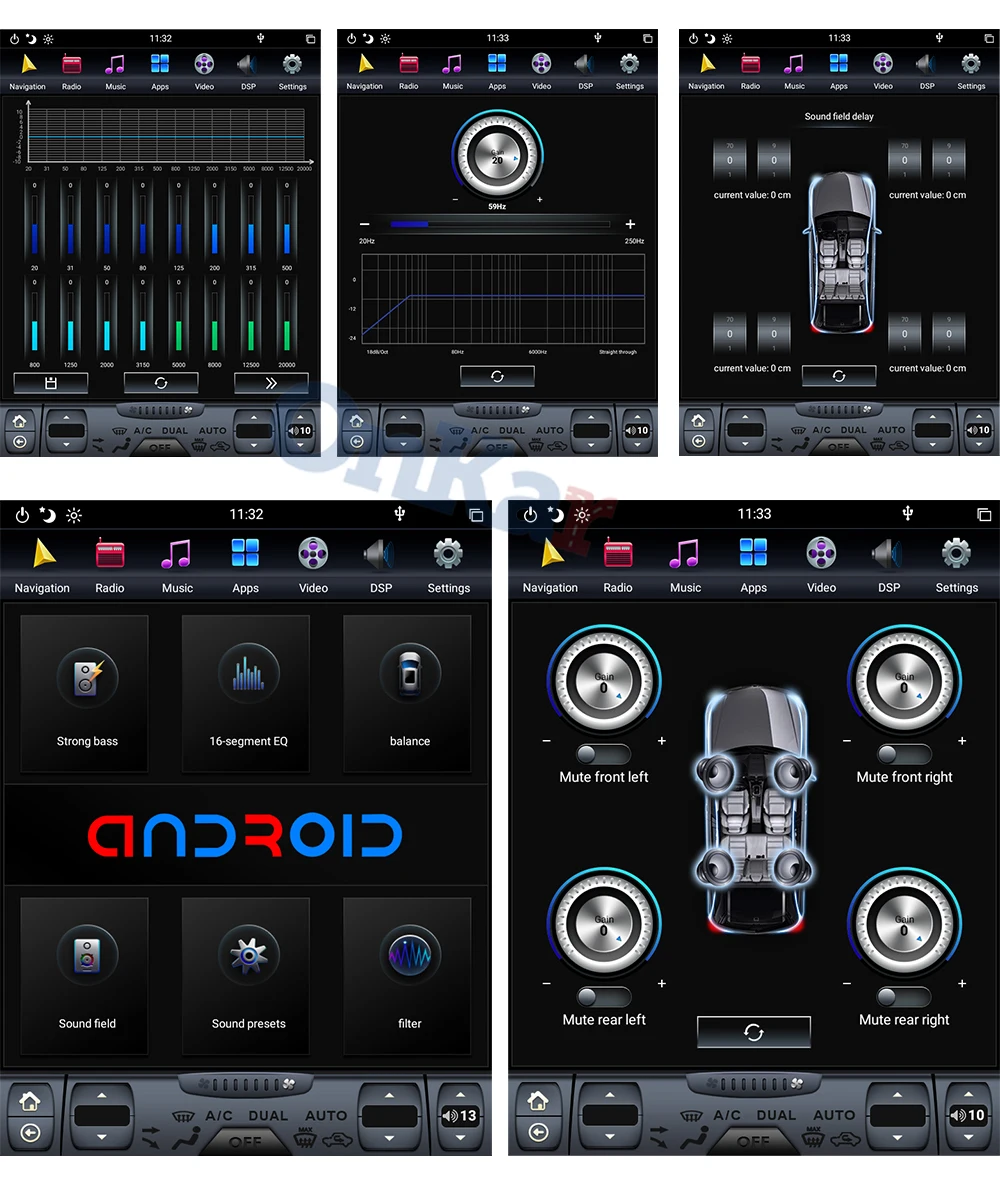 DSP(Digital Sound Field Processing) features fully digital processing chip, and a powerful 56-bit double-precision mode to adjust the audio signal in every aspects, also supports MAX output power 4 x 45 W, which makes the music just sound wider and much more realistic.