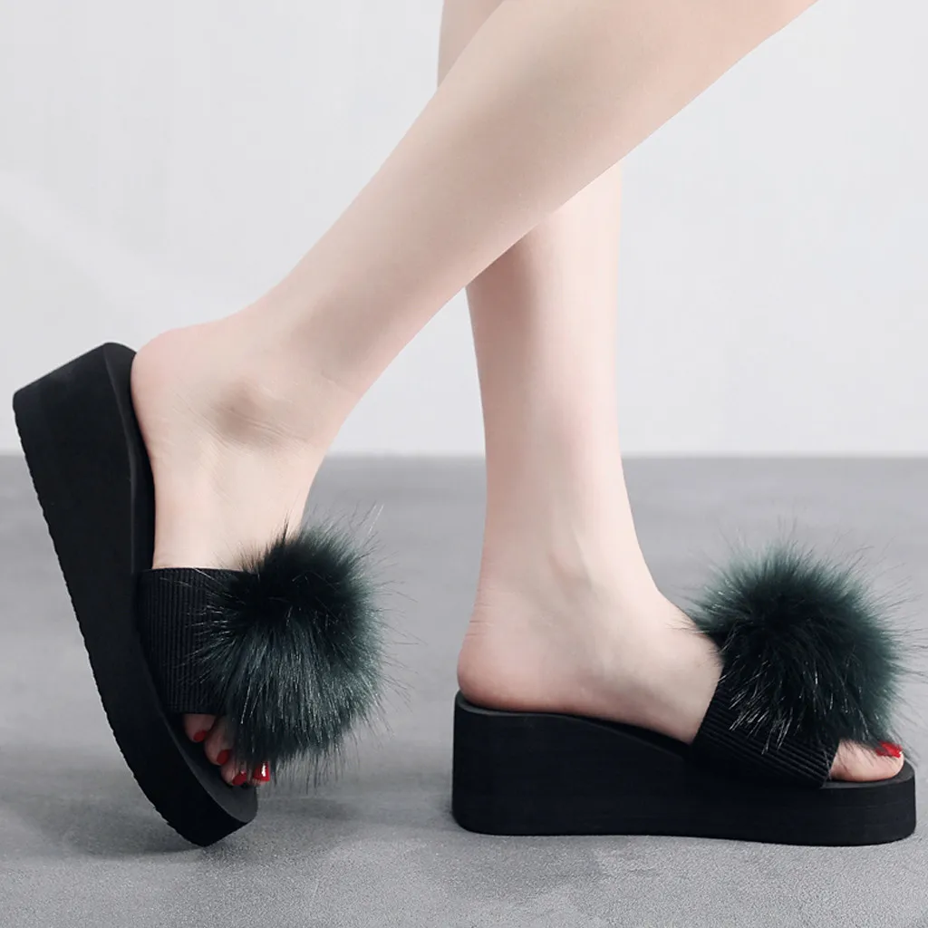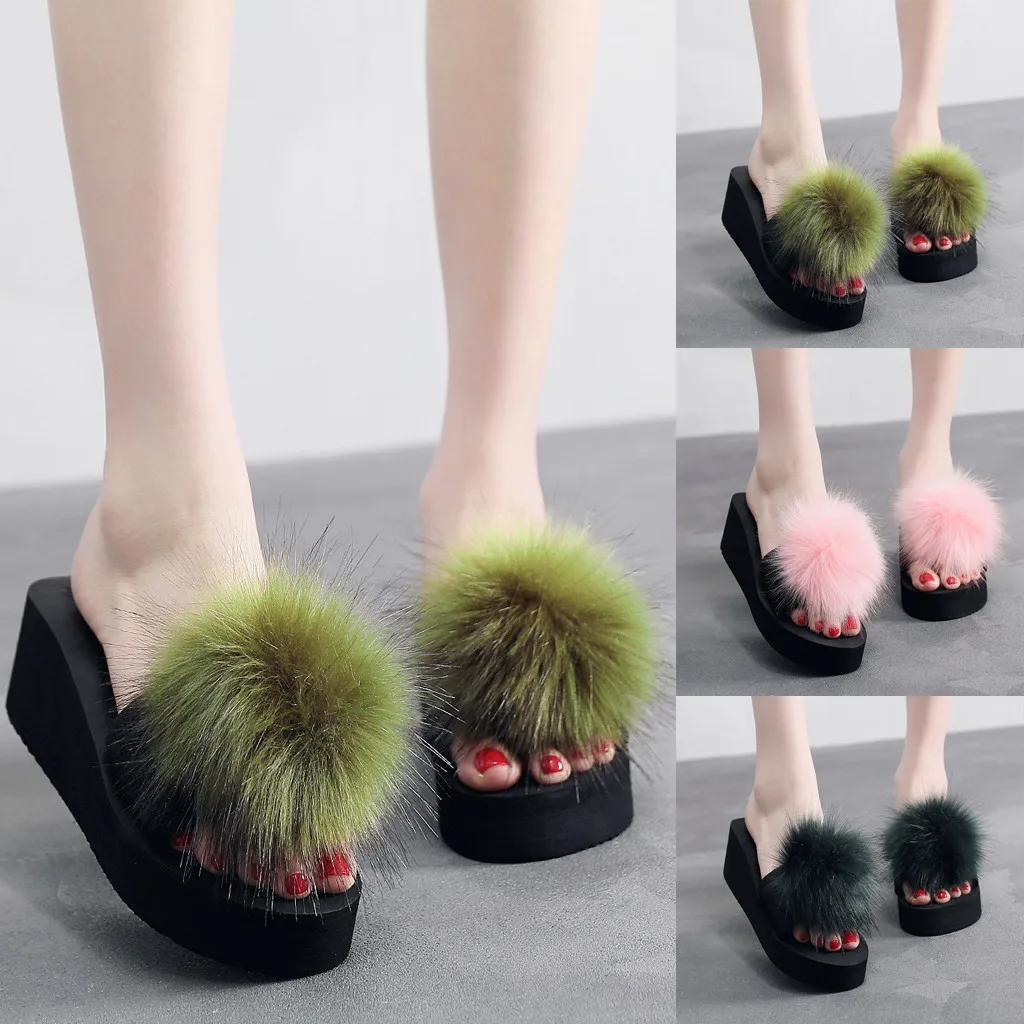 Женская обувь на танкетке; Зимние домашние и уличные Нескользящие тапочки; Женская домашняя обувь