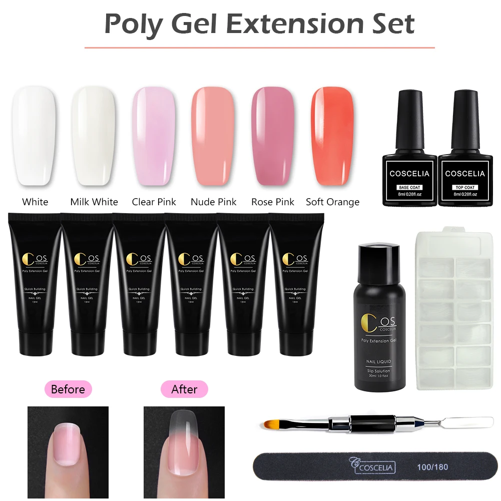 6 * расширение поли гель (30 мл/15 мл) 1 * верхнее пальто 1 * базовое пальто 1 * пилка для ногтей 1 * очищающее средство для ногтей плюс жидкость 1 * щетка для ногтей 1 коробка (100 шт) Nial Tips
