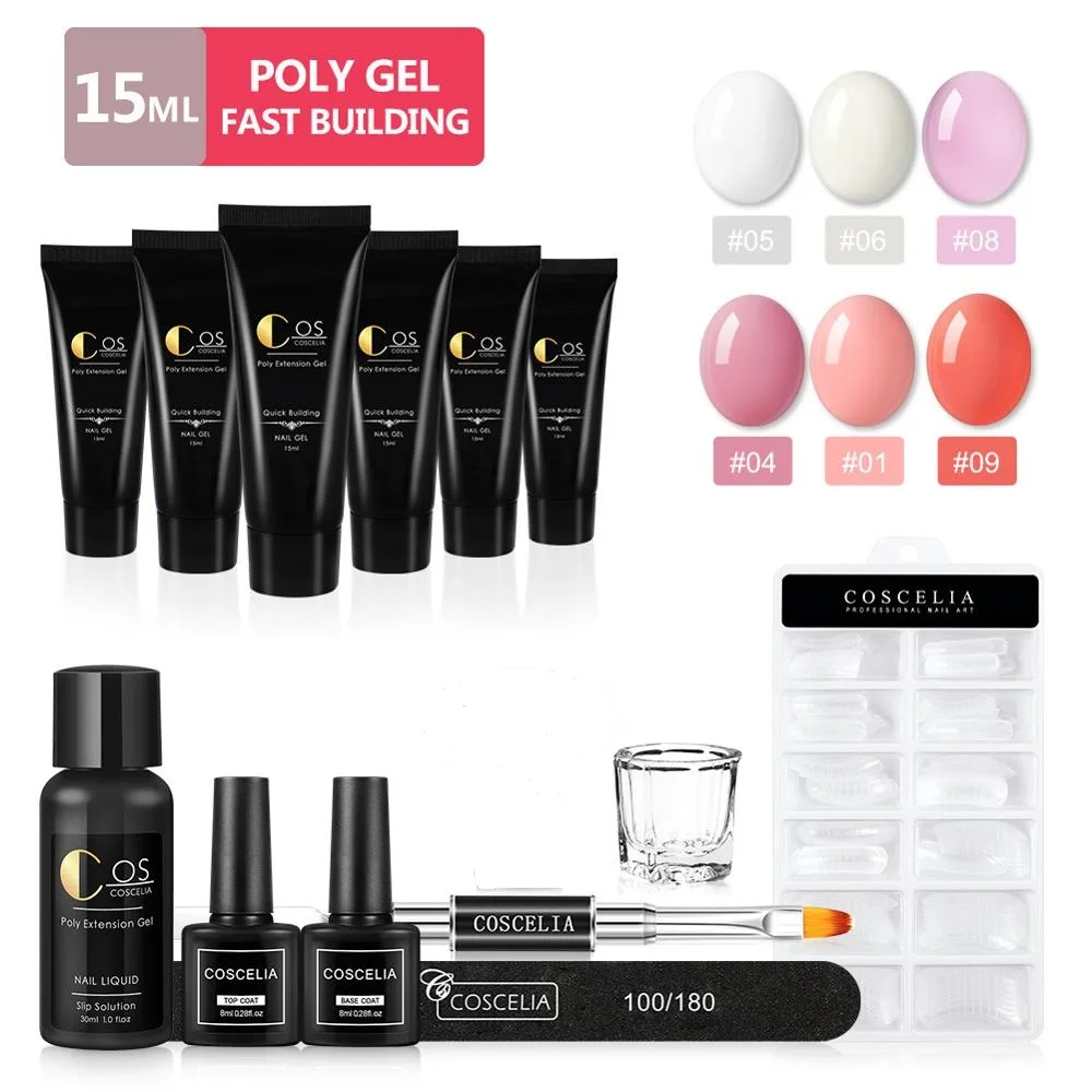 1 шт 15 мл расширение поли гель 1 * очищающее средство для ногтей плюс жидкость 1 * щетка для ногтей 50 шт. Nial наконечники