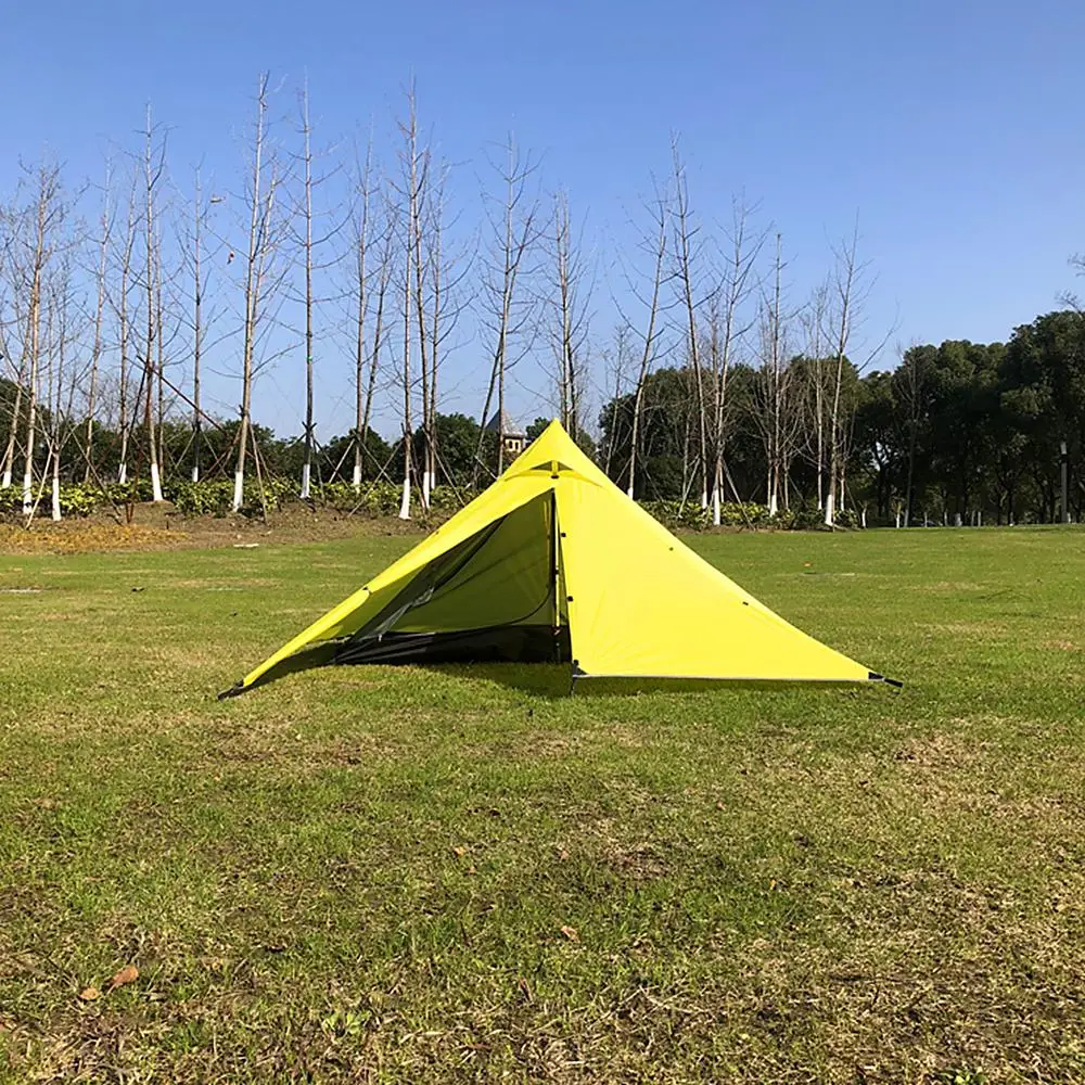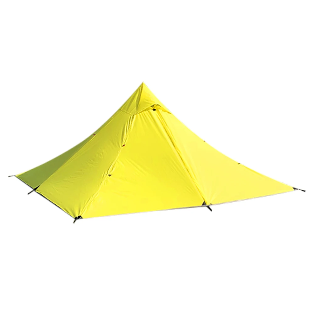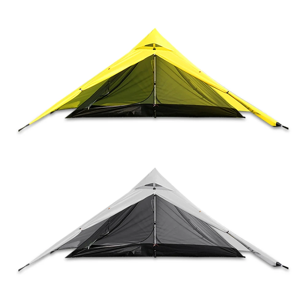 Эта палатка имеет два слоя: внутренний тент и наружный тент. Палатка изготовлена из высококачественного материала, водонепроницаемого и легкого. Его легко поддерживать вашим треккинговым полюсом, очень удобно.