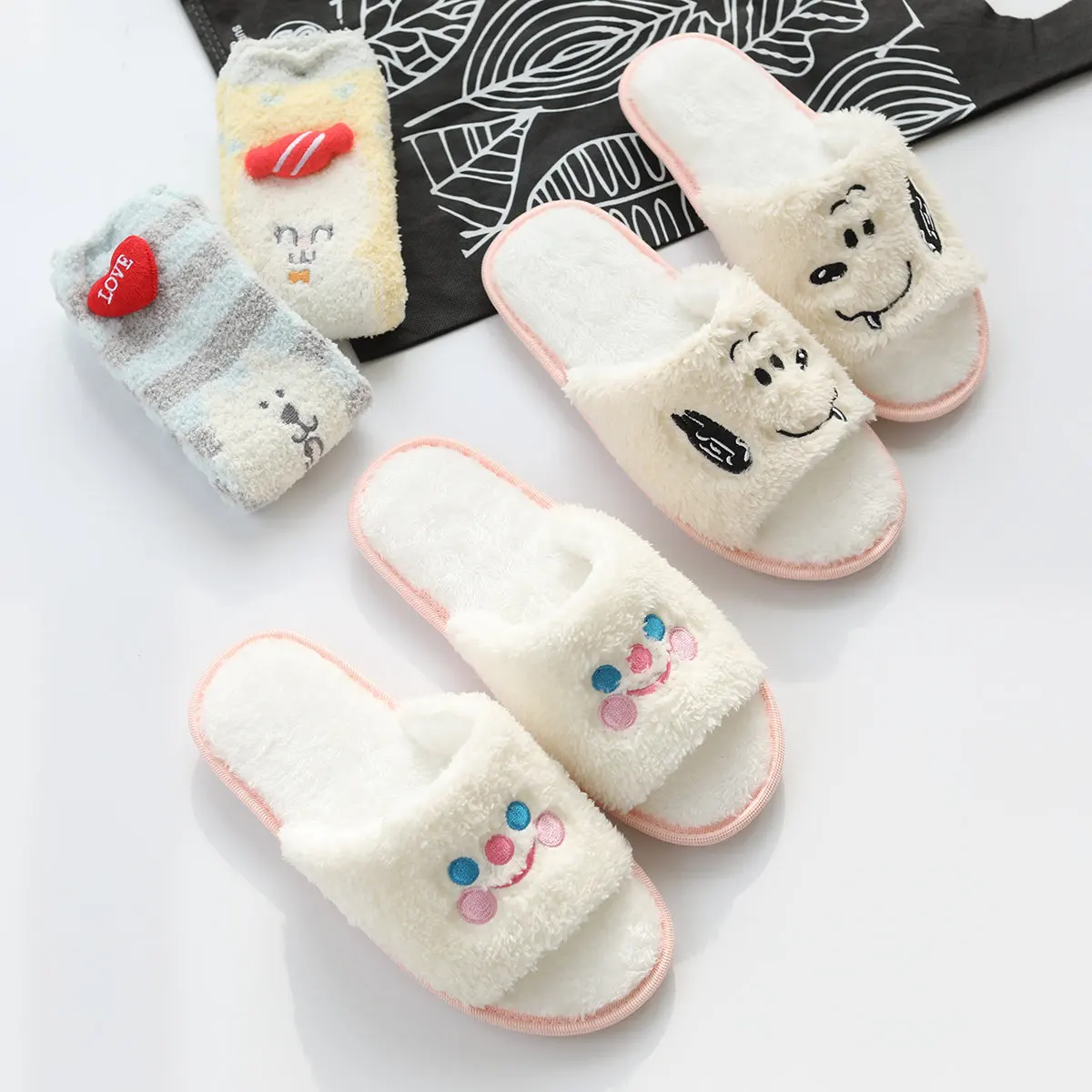 Размер обуви: 36-38 Стиль: японский Популярный элемент: мультфильм Подходящее пространство: спальня Классификация цвета: смайлик, собака Подходящий сезон: зима