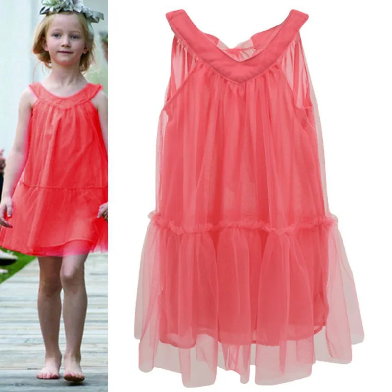 От 2 до 11 лет летнее красное платье-майка с v-образным вырезом для девочек