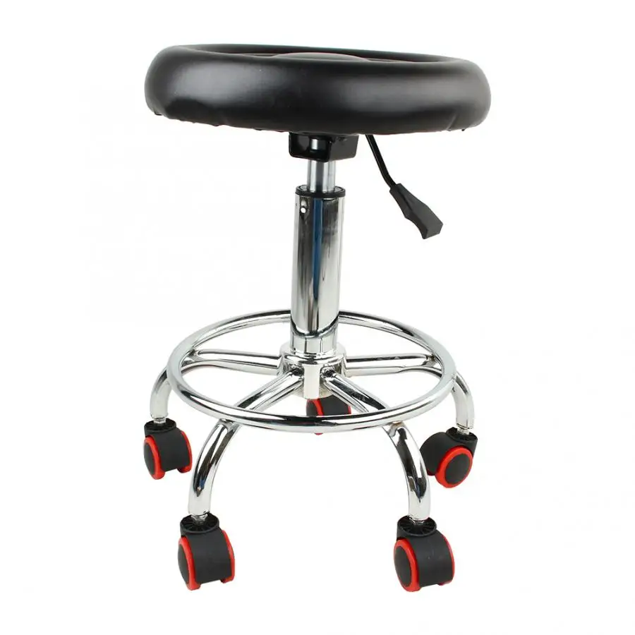 Это наши вращающиеся барные стулья, состоящие из 5 колес для легкого движения. Используется для парикмахеров, косметологов, парикмахеров, стоматологов, татуировщиков. Гидравлическая конструкция удобна для регулировки высоты для лучшего подходящего положения.