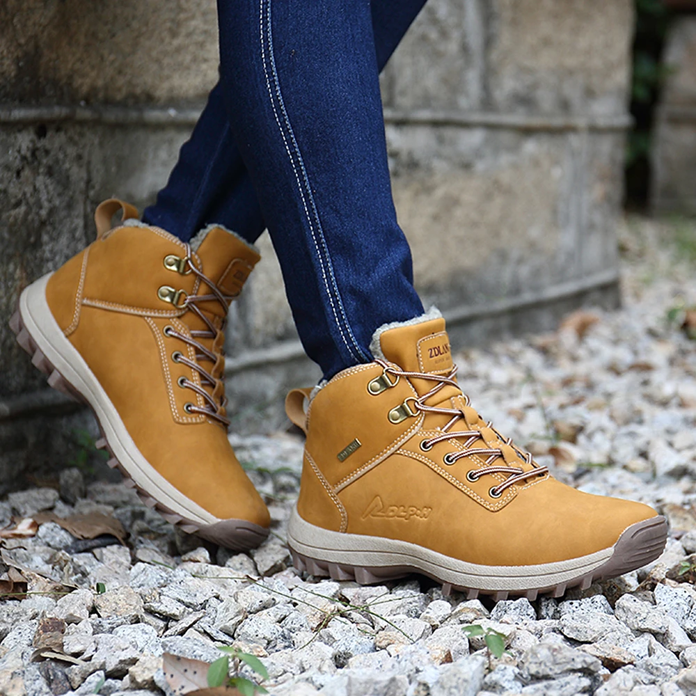 Изготовлен из водонепроницаемого полиуретана, подошва из термопластика и полностью короткая плюшевая подкладка.