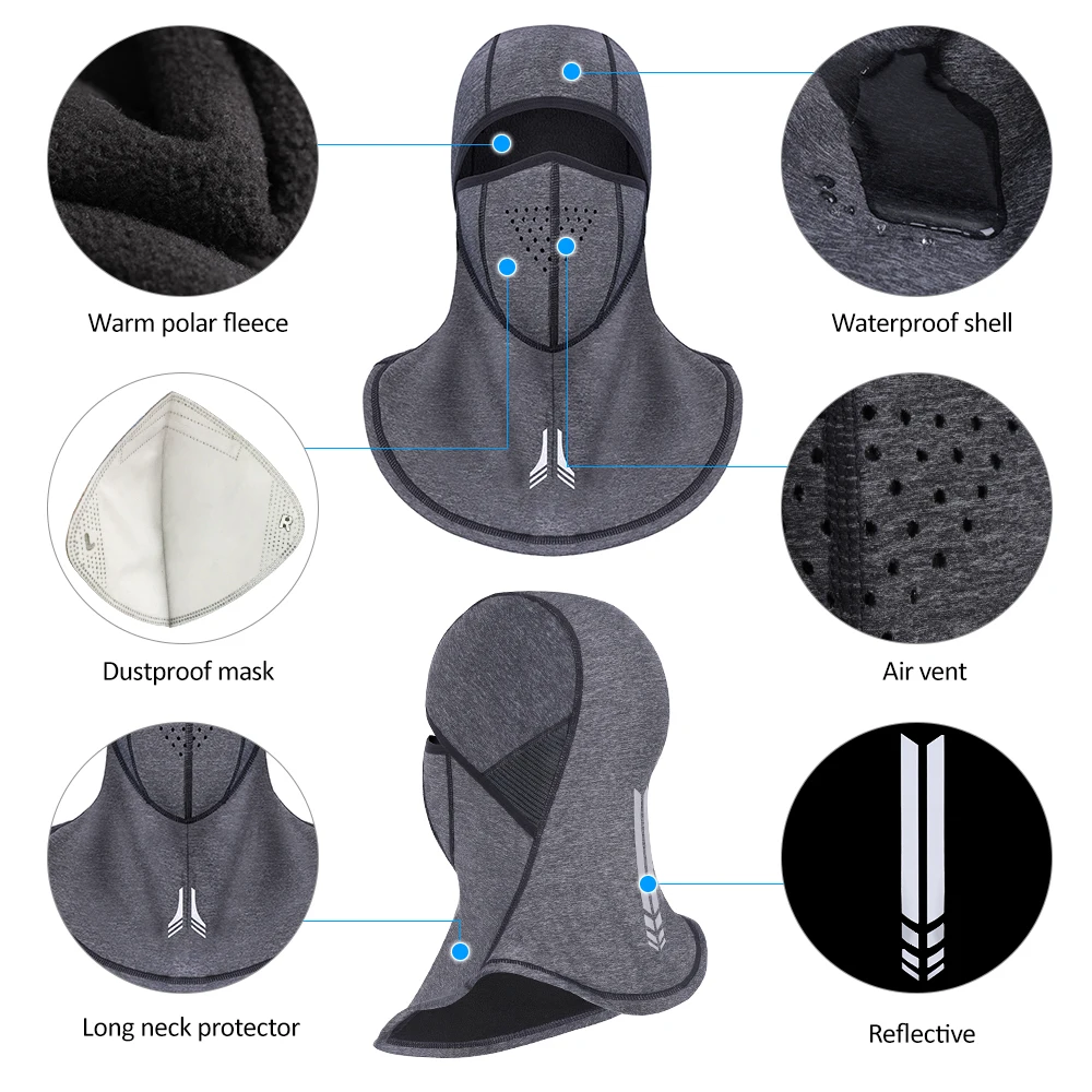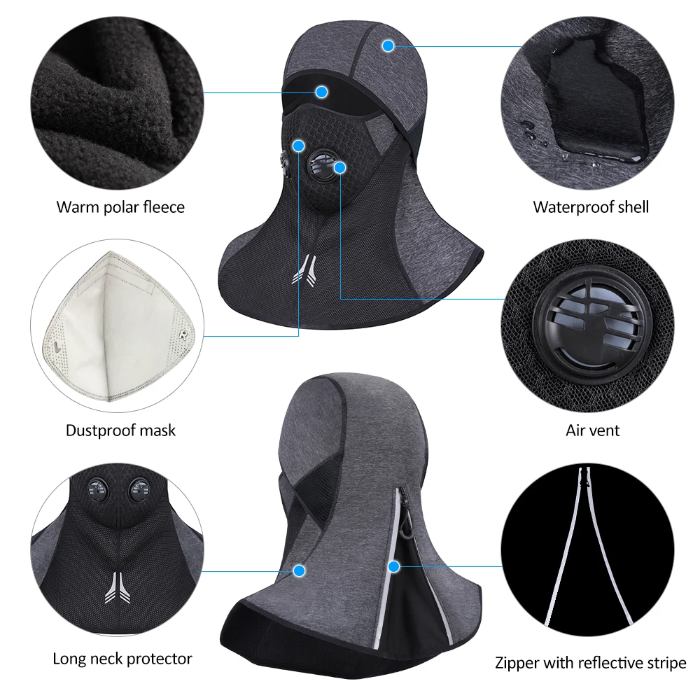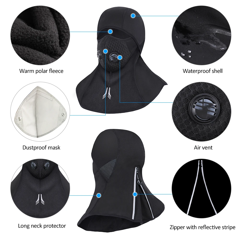 Основной корпус из спандекса, отличный водоотталкивающий и ветрозащитный эффект. Флисовая Подкладка удобно и тепло сидит подЗащитный шлем или жесткая шляпа. Поместите углеродную фильтрующую прокладку в марлевую маску, чтобы сохранить холодный воздух и пыль, и полное покрытие для головы, чтобы защитить вашу голову, лицо, рот и шею в тепле зимой катания на коньках, катании на лыжах, для работы и езды на велосипеде.
