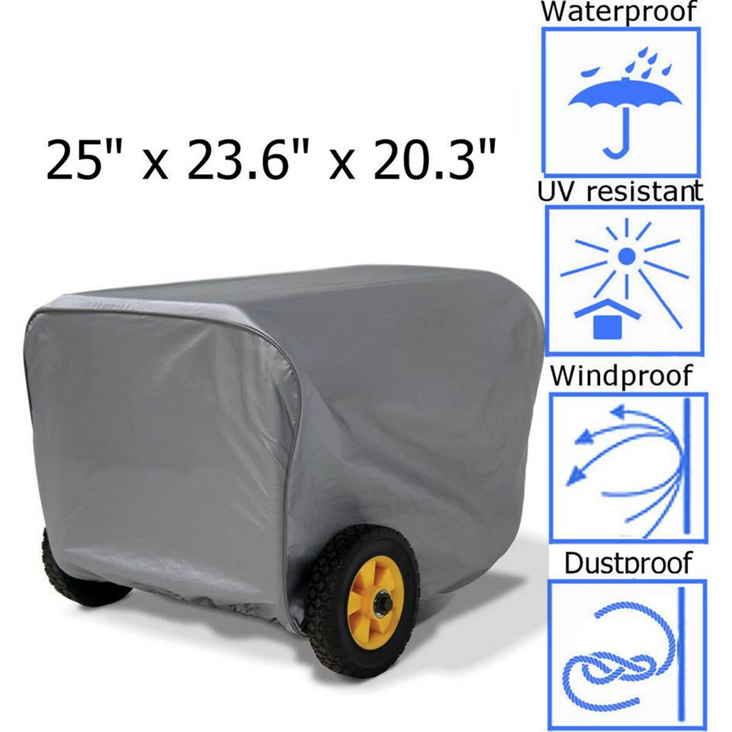 This generator cover can provide nice protection to your outdoor generator. Water-resistant backing keeps your generator completely dry. And full cover with seam sealing tape makes it 100% waterproof. Elastic hem cord and bottom strap allow for a custom secure fit, especially during high winds and severe weather.