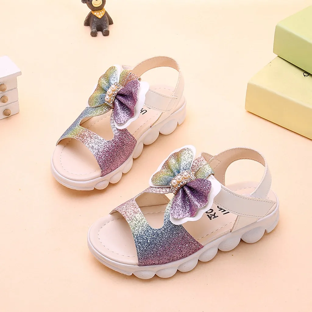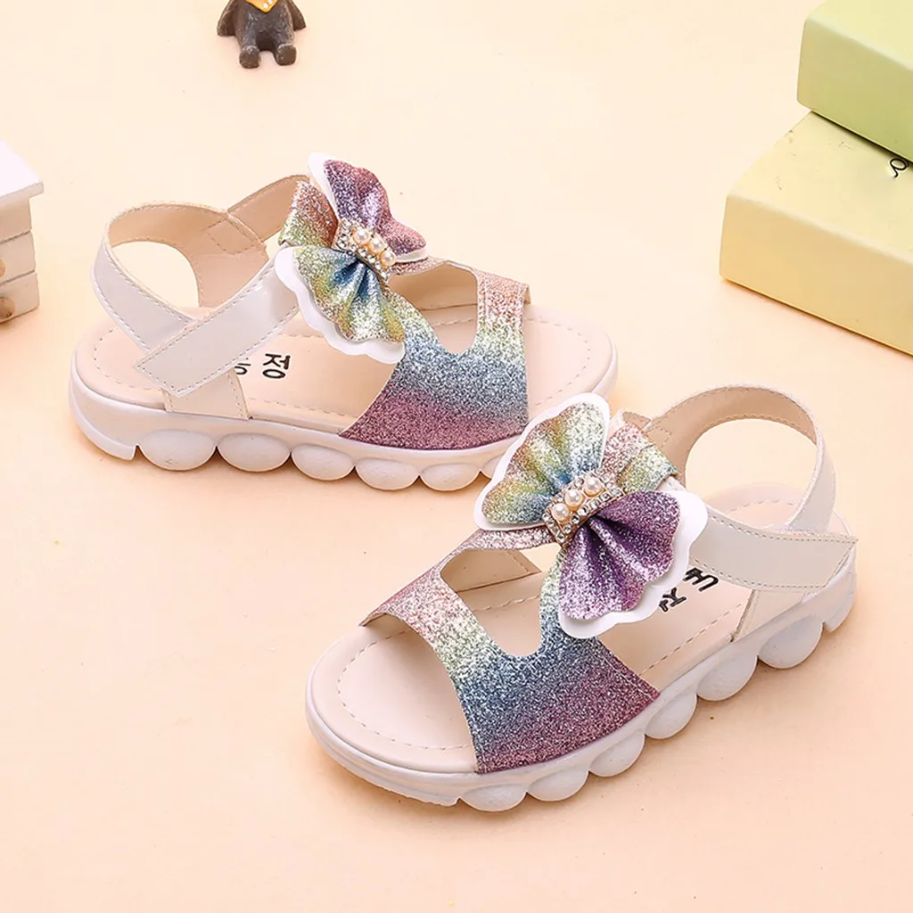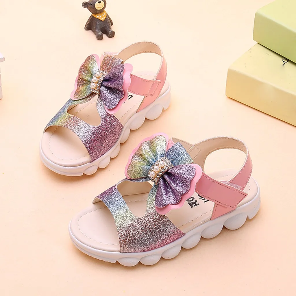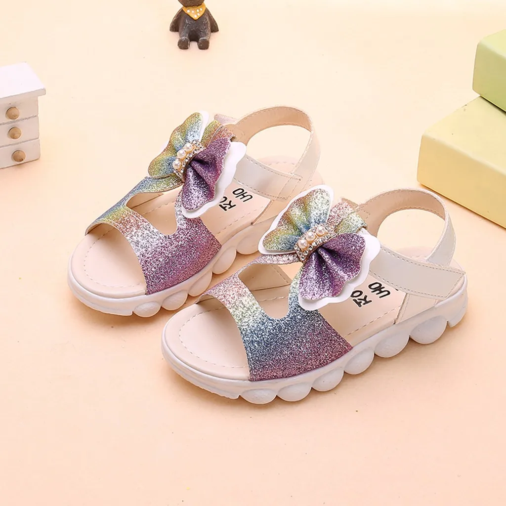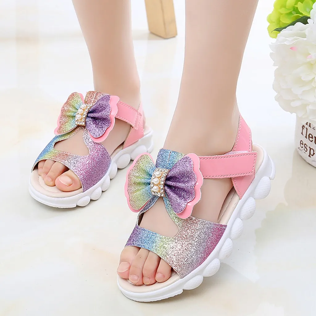 Summer Children Infant Kids Baby Girls Bling Bow Princess Hollow Sandals Shoes