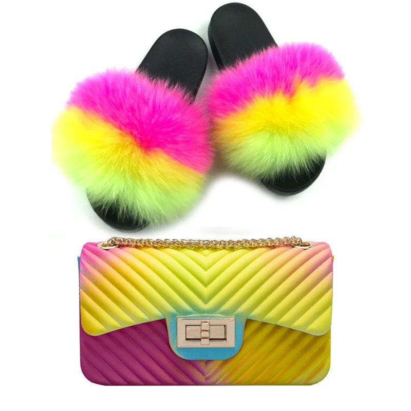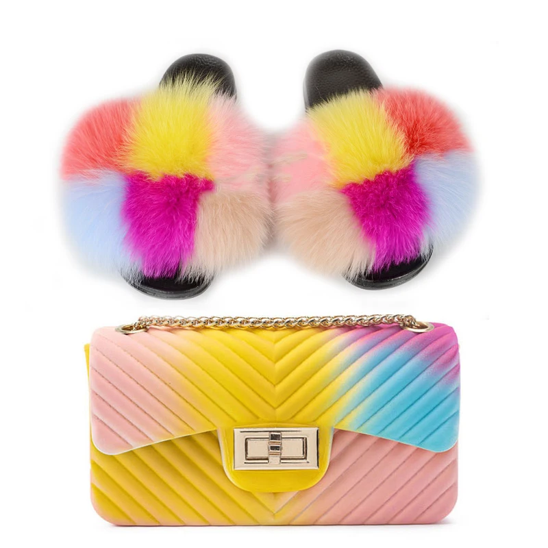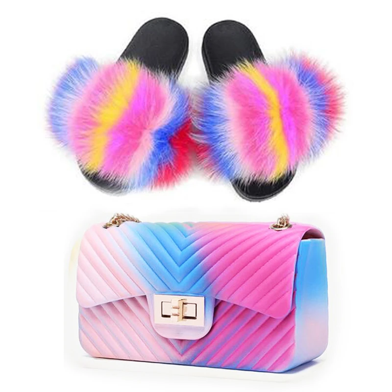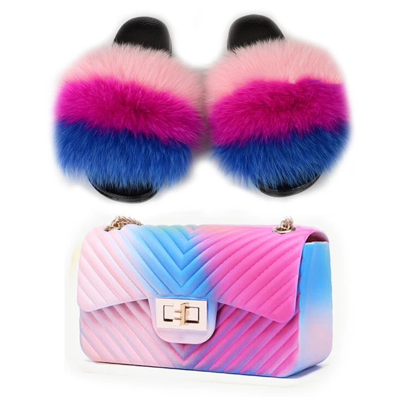 Обувь; Женские шлепанцы на меху; Женские шлепанцы из лисьего меха; Цветные прозрачные сумки; Разноцветная женская обувь; Вьетнамки; Пушистые комплекты тапочек