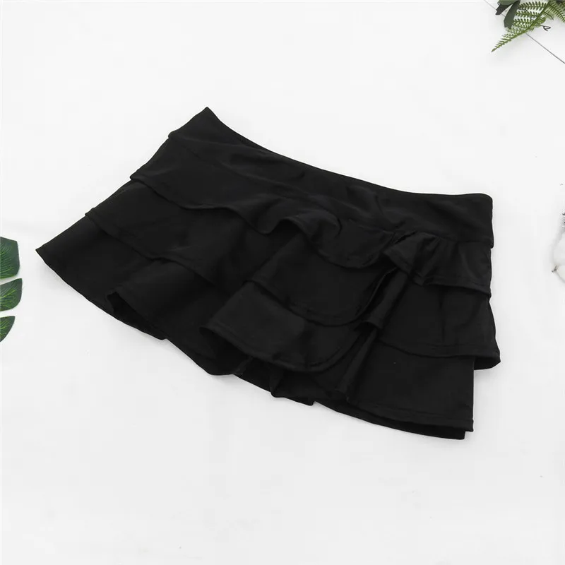 Women Plus Size High Waist Solid Tiered Patchwork Design Beach Swim Boyshort