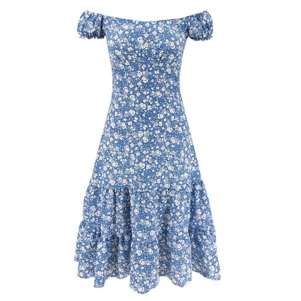 Модное женское свободное платье с коротким рукавом и цветочным принтом