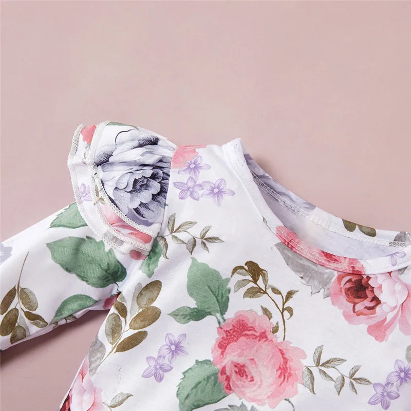 Комплект одежды для новорожденных девочек; сезон осень-весна; комбинезон с длинными рукавами и цветочным принтом; Однотонная юбка с бантом; костюмы для маленьких девочек