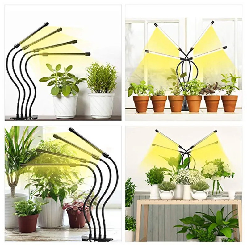 USB 5 В таймер с регулируемой яркостью полный спектр 4 головы светодиодный светильник для выращивания 40 Вт с гибким зажимом на 360 градусов фитолампа для помещения фитоламповая лампа для выращивания растений солнечный светильник лампа для овощей
