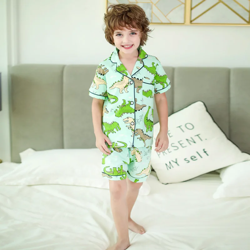 TUONXYE/Новые летние пижамы с динозаврами для мальчиков пижамный комплект для девочек с принтом животных из мультфильмов, хлопковая детская пижама, детская одежда для сна