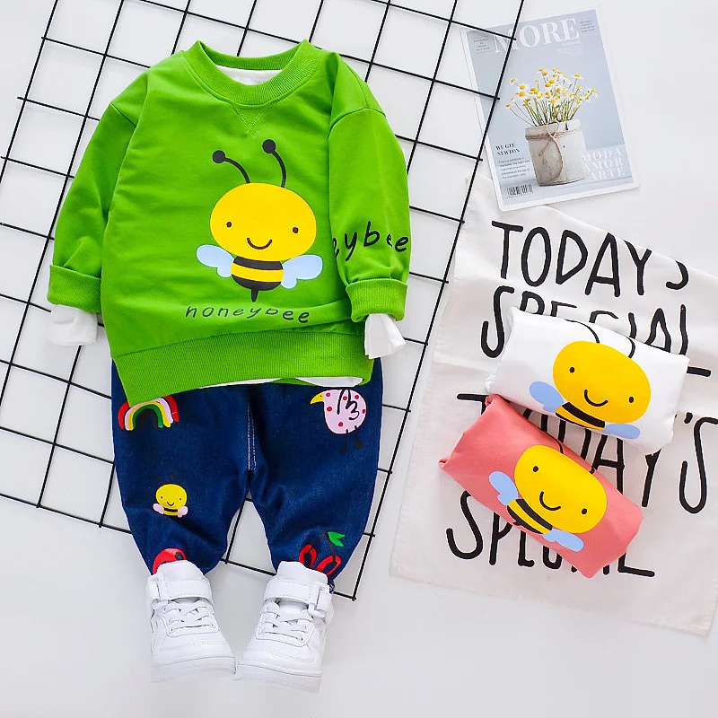 2020 New Spring Children Fashion Clothes Baby Boy Girls Cartoon T Shirt Jeans Pants 2Pcs/sets Kids Infant Clothing Toddler Tracksuit For 0-5 Years