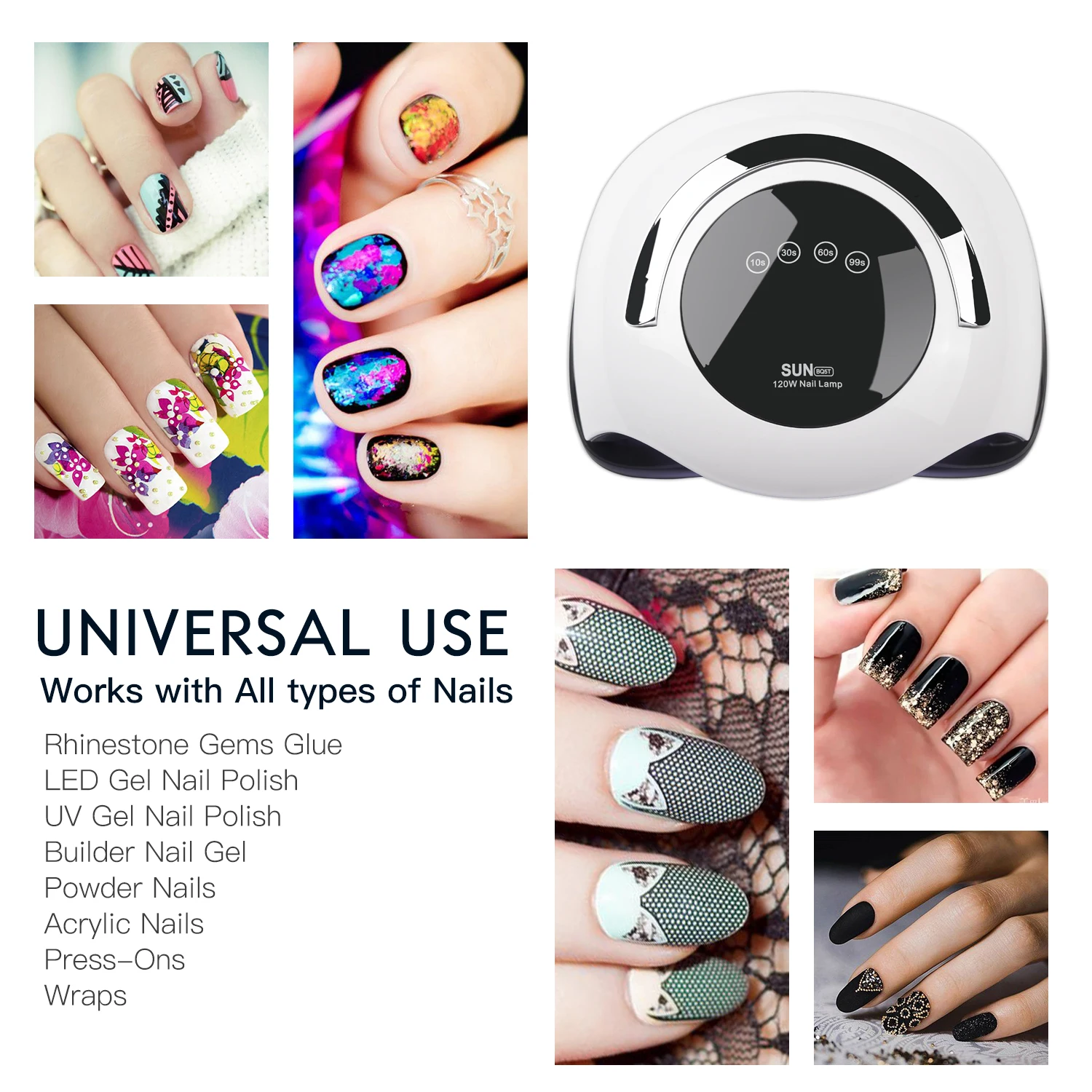 5) Установите таймер на 10s, 30s, 60s или 99s для лечения гелевых ногтей