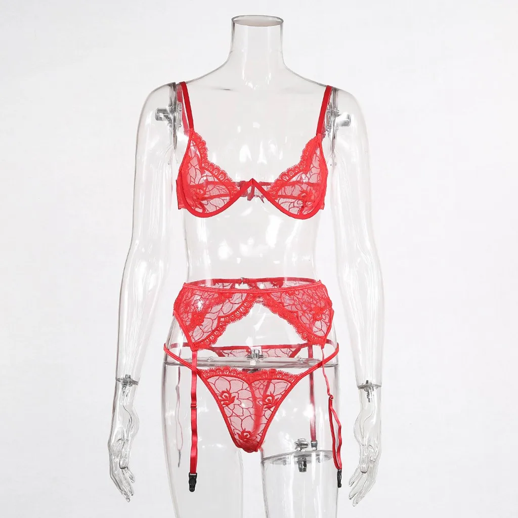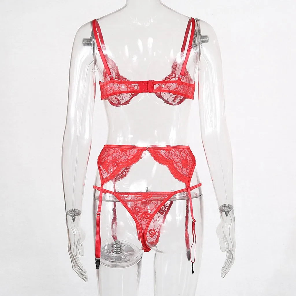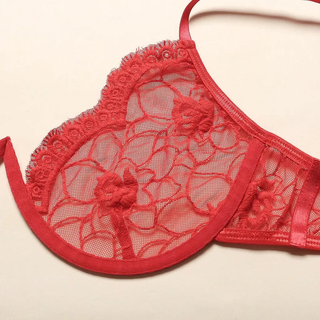 Сексуальное женское нижнее белье с цветочным кружевом, сексуальное нижнее белье, бюстгальтер и стринги, Комплект подвязок, нижнее белье для женщин