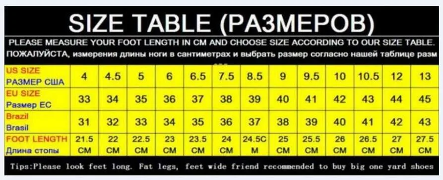 Пожалуйста, внимательно ознакомьтесь с таблицей размеров в соответствии с длиной Вашей стопы, чтобы выбрать размер, поэтомуДля выбора правильного размера!Пожалуйста, выберите американский размер, спасибо!Если выЕсли вы не уверены, какой размер вам подходит, пожалуйста, напишите нам!