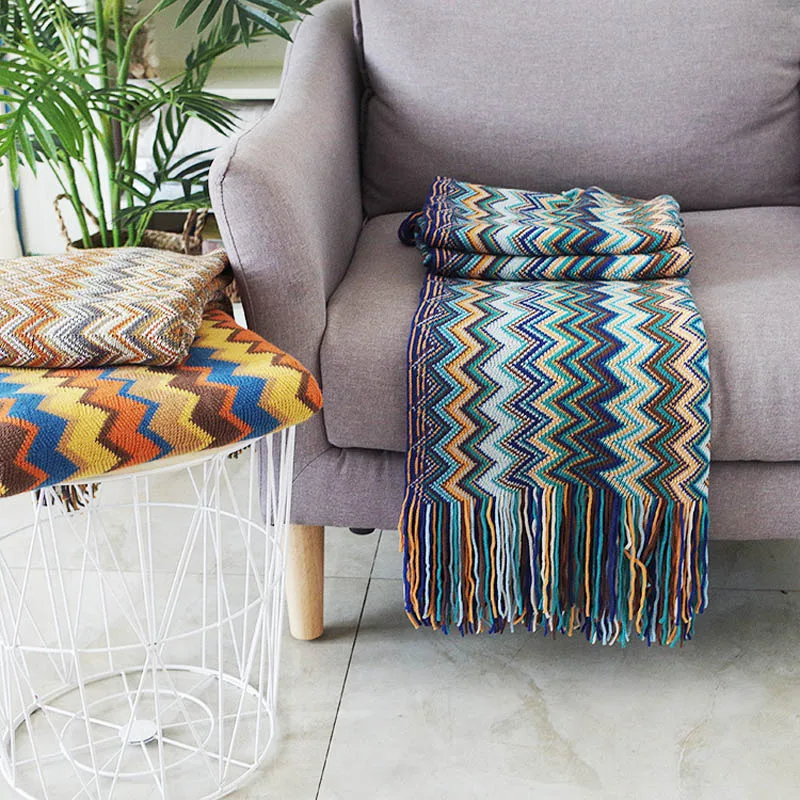 Портативное богемное трикотажное одеяло с кисточкой, вязаное для кровати, дивана, домашнего путешествия, текстиль, одеяло, мягкое, не скатывается
