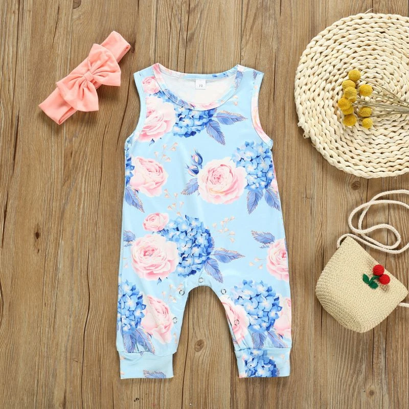 Детский хлопковый комбинезон с цветочным рисунком для маленьких девочек
