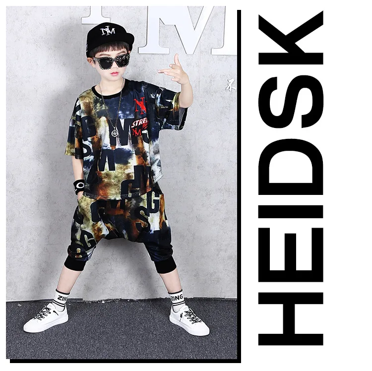 Комплекты одежды в стиле хип-хоп для мальчиков детская Одежда для танцев Детский комплект из двух предметов с шортами-Шароварами и брюками-Капри