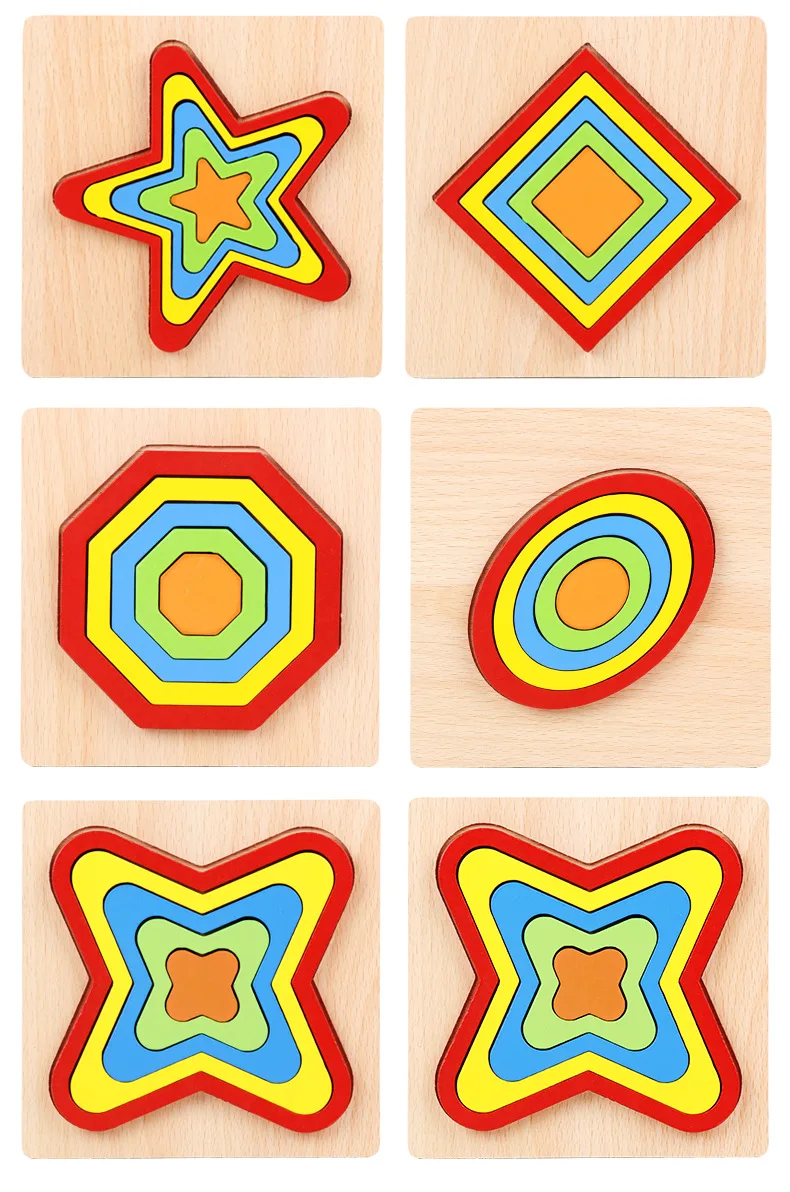 DIY Kids Baby Creative 3D Wooden Puzzle Geometric Shape Jigsaw Intelligence Develop Montessori Educational Toys For Children