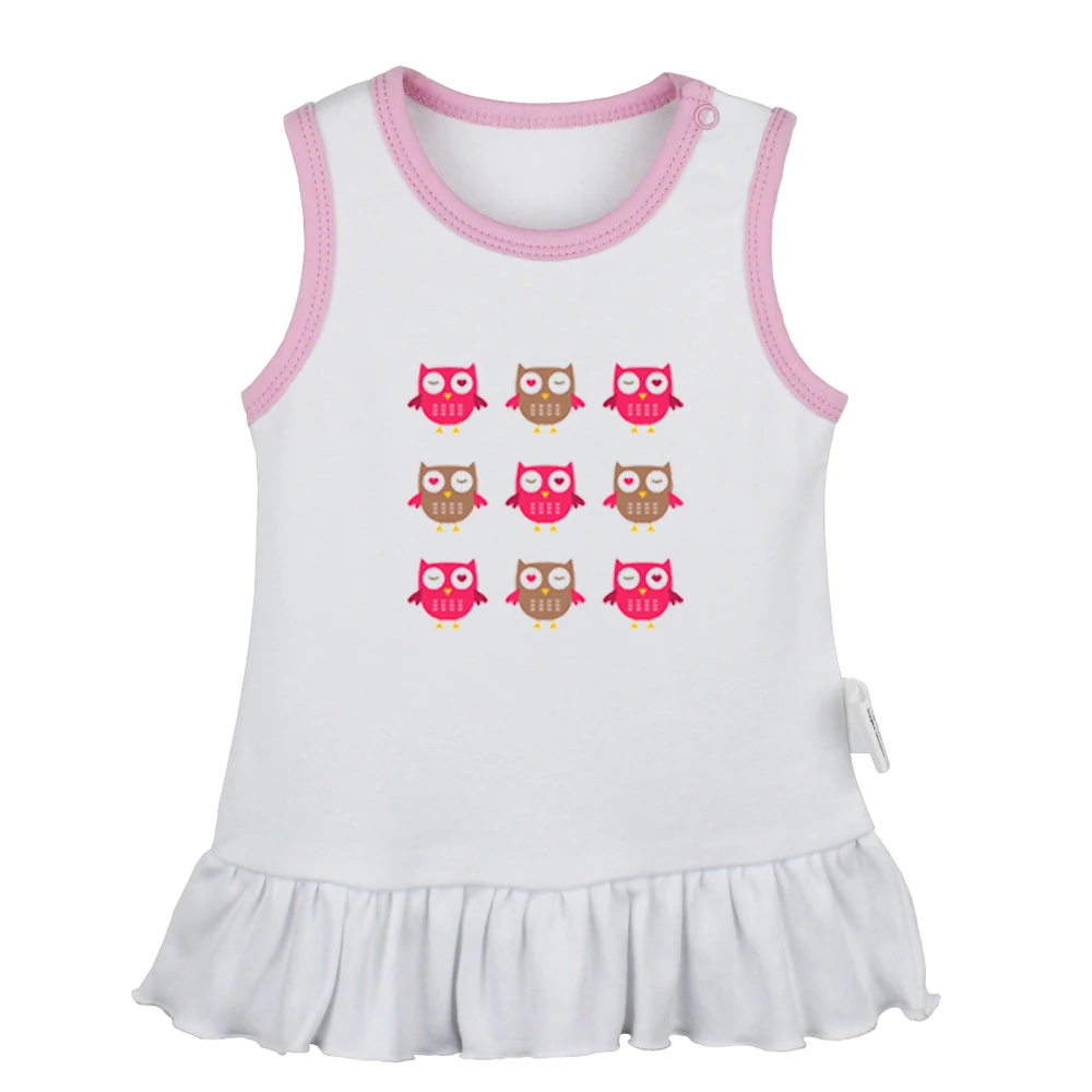 9 розовый милый подмигивающий рисунок Сова Летающая сова 5 сжигающий человек Забавный дизайн Платья для новорожденных девочек; Платье без рукавов для малышей; Хлопковая одежда для новорожденных