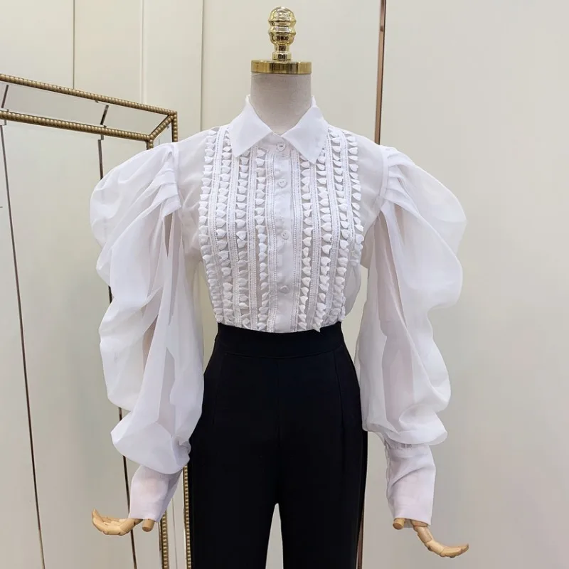 Женская блузка размера плюс большого однотонные рубашки с воротником и длинным
