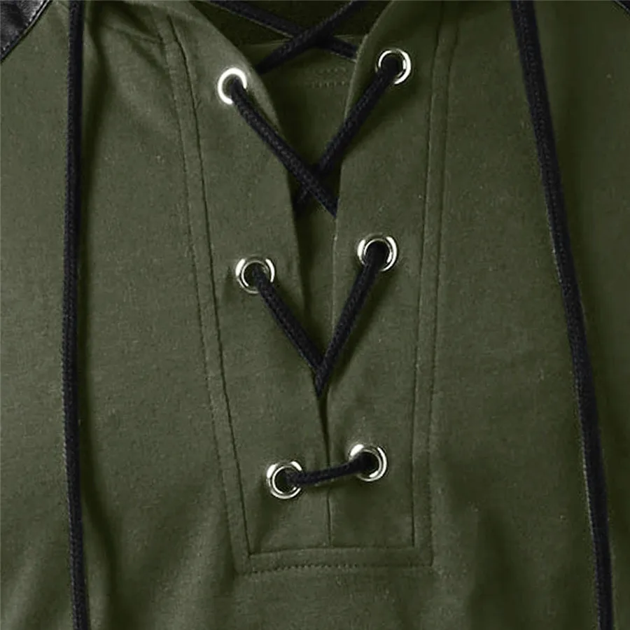 Men Tactical Military T Shirt Long Sleeve Army Combat Shirt Cuff Faux Leather Strap Neckline Drawstring Buckle Hoodie Sweatshirt