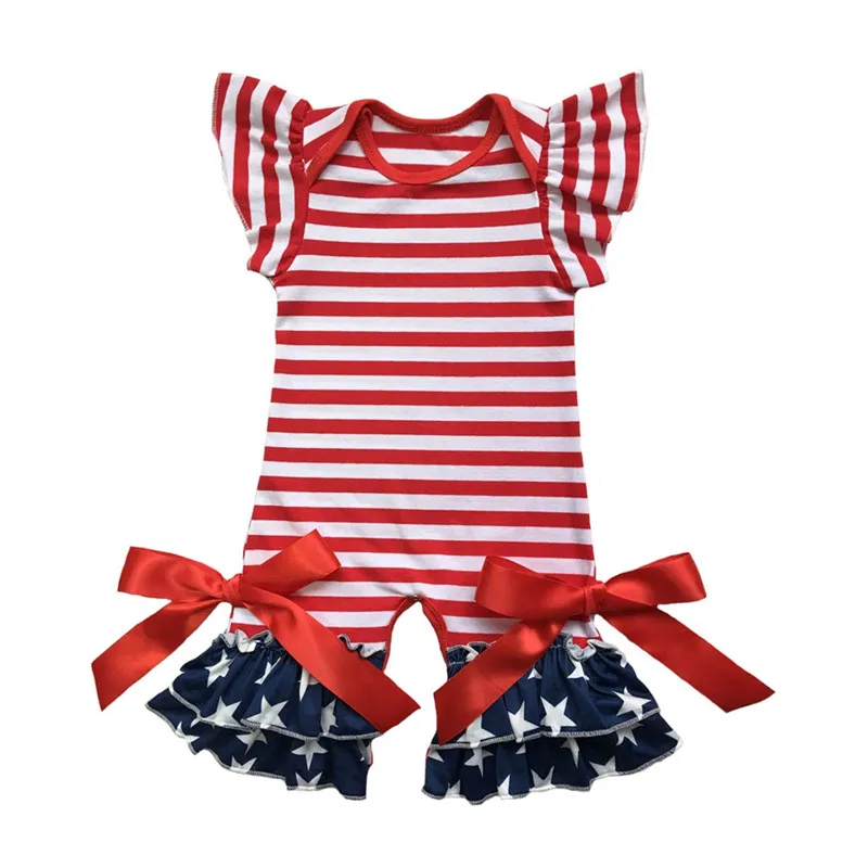 Сезон весна-лето; Детский комбинезон; Одежда для новорожденных; 4 июля; Детский комбинезон с рукавами-крылышками; Капри; Комбинезон для маленьких девочек