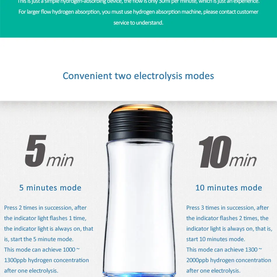 Содержание водорода до 2000 ~ 3000ppb в течение 2 раз (10 минутный режим) или 4 раза (5 минутный режим).